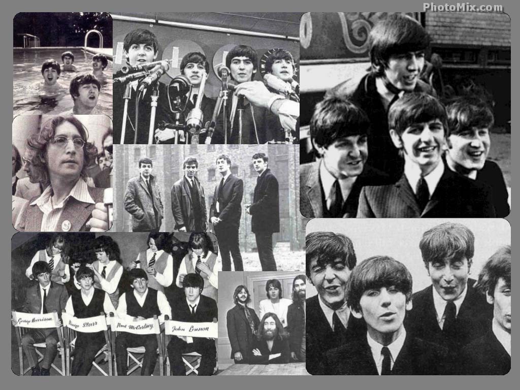 Description: A collage of photos of the beatles in the 1960s and 1960s.