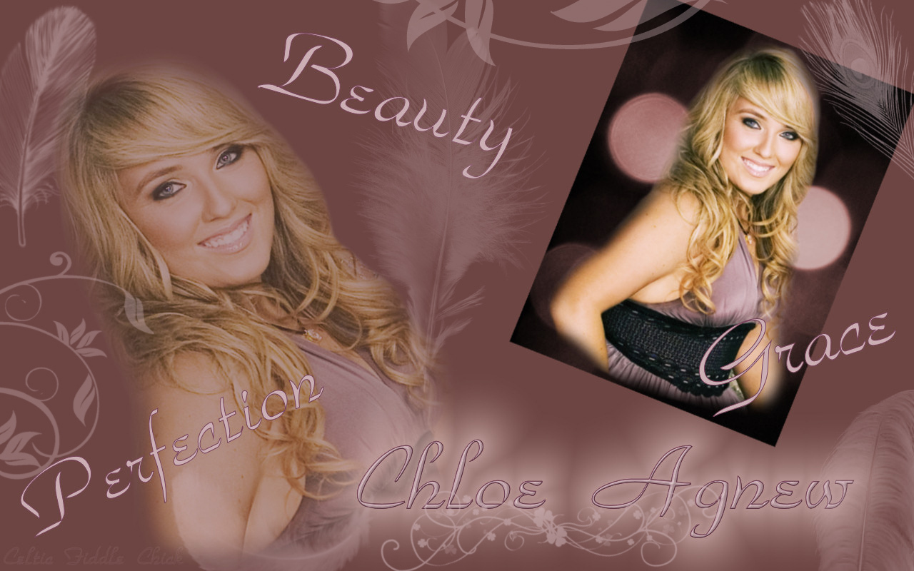 Description: A beautiful blonde woman with long hair and a feathery background with the words beauty grace above her head.