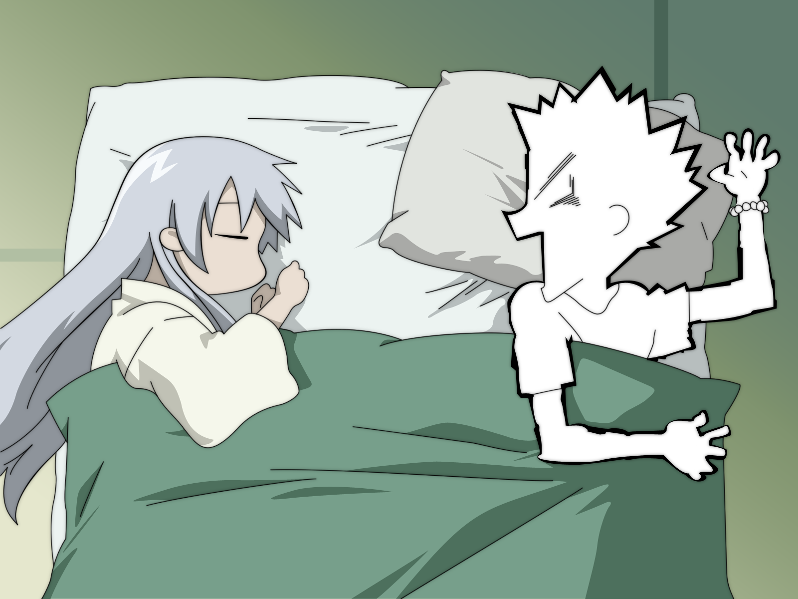 Description: A person laying in a bed with a pillow and a pillow case on it.