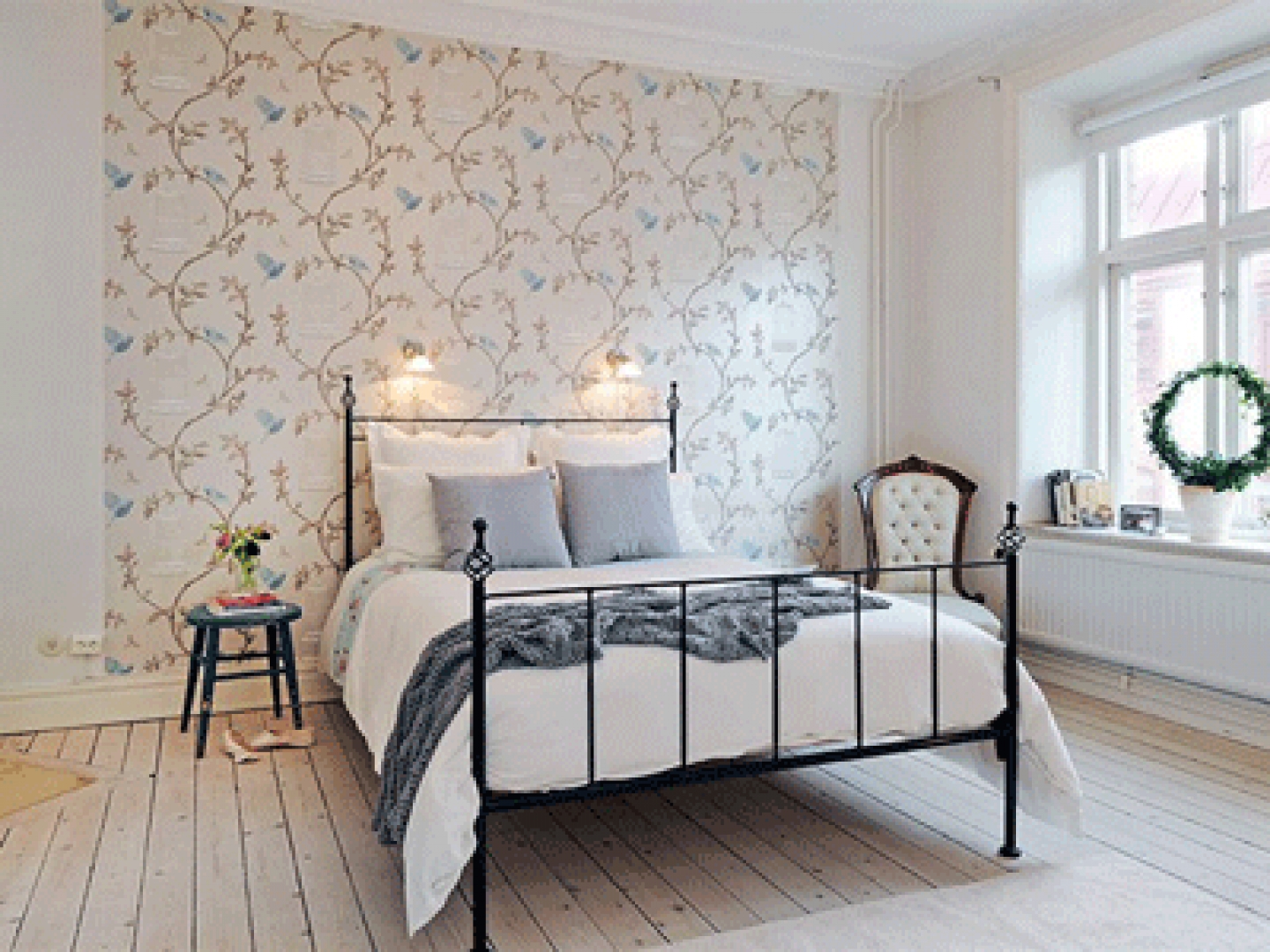 Description: A bedroom with a bed and a window in it and a wreath on the wall behind it and a wreath on the bed.