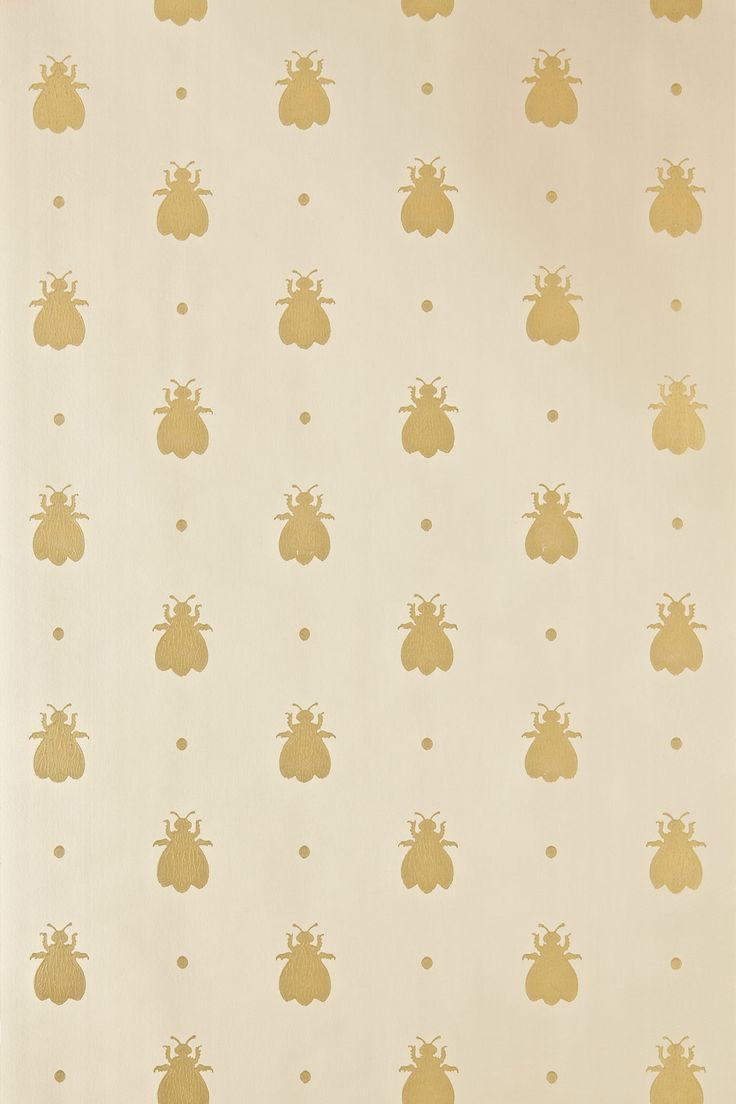 Description: A wall with a pattern of bees on it's side and a white background with gold dots on it.