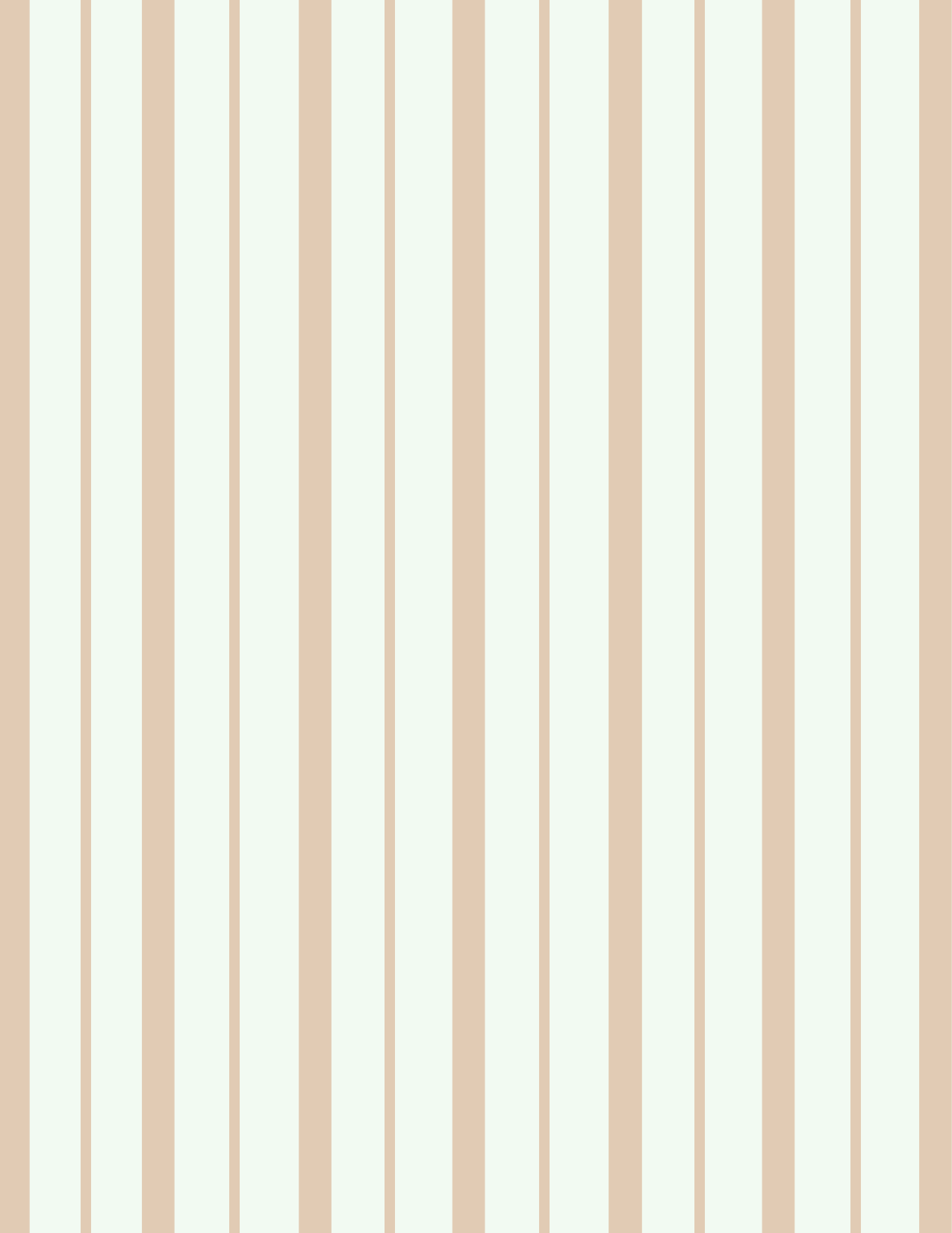 Description: A beige and white striped wallpaper with vertical stripes on it's sides and a white vase with a flower in it.