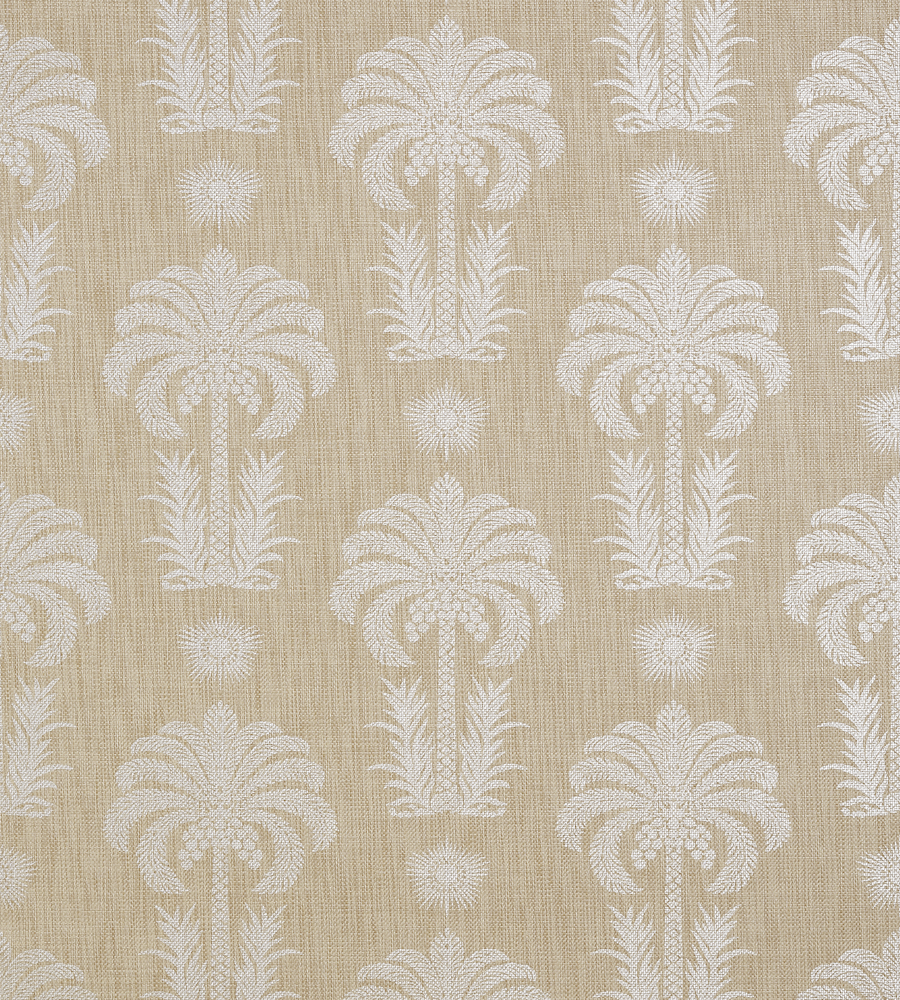 Description: A beige and white wallpaper with a pattern of palm trees on it's side and a white background.