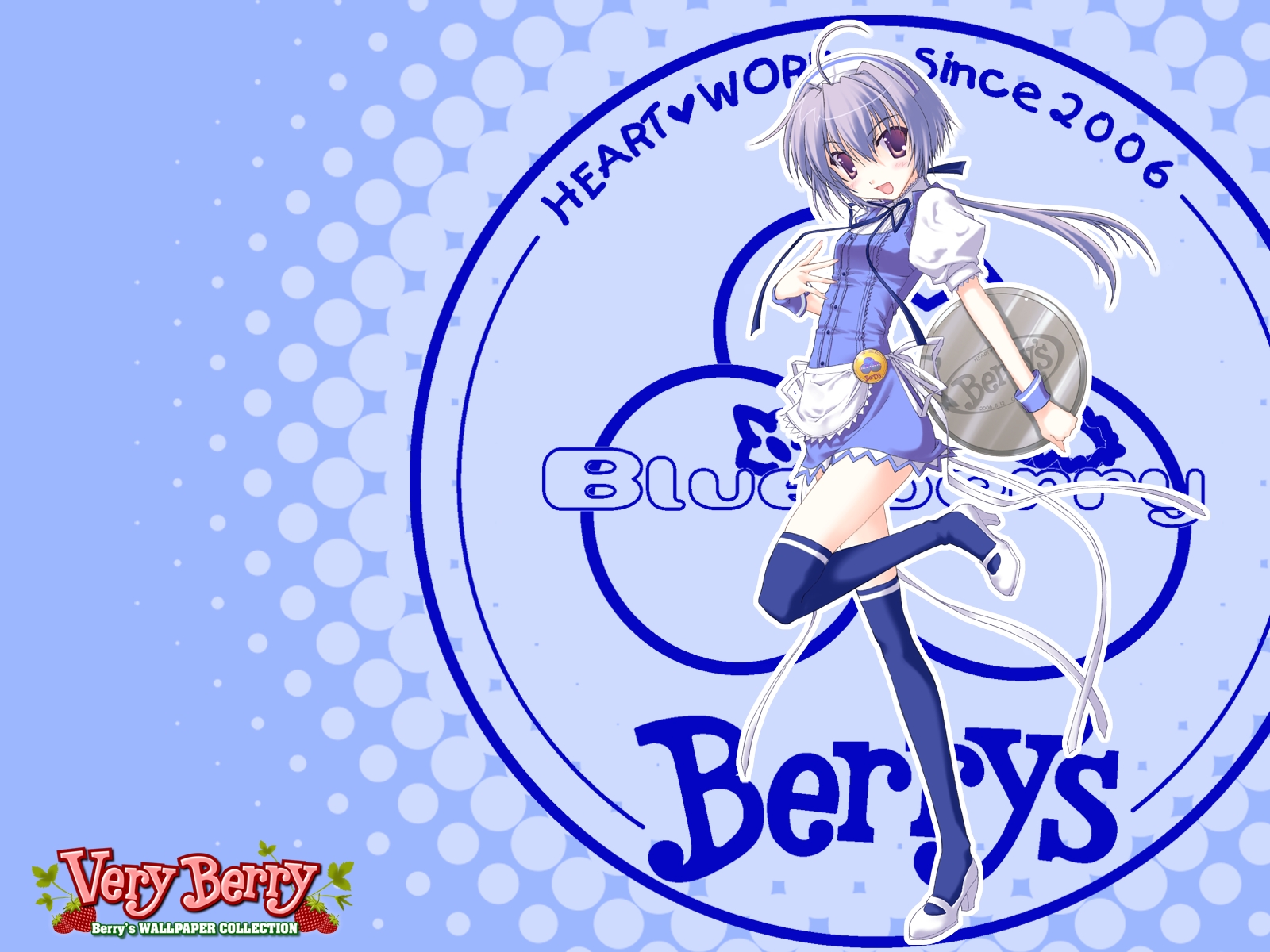 Description: A cartoon character with a blue dress and boots on a blue background with a blue circle around her and the words berry's.