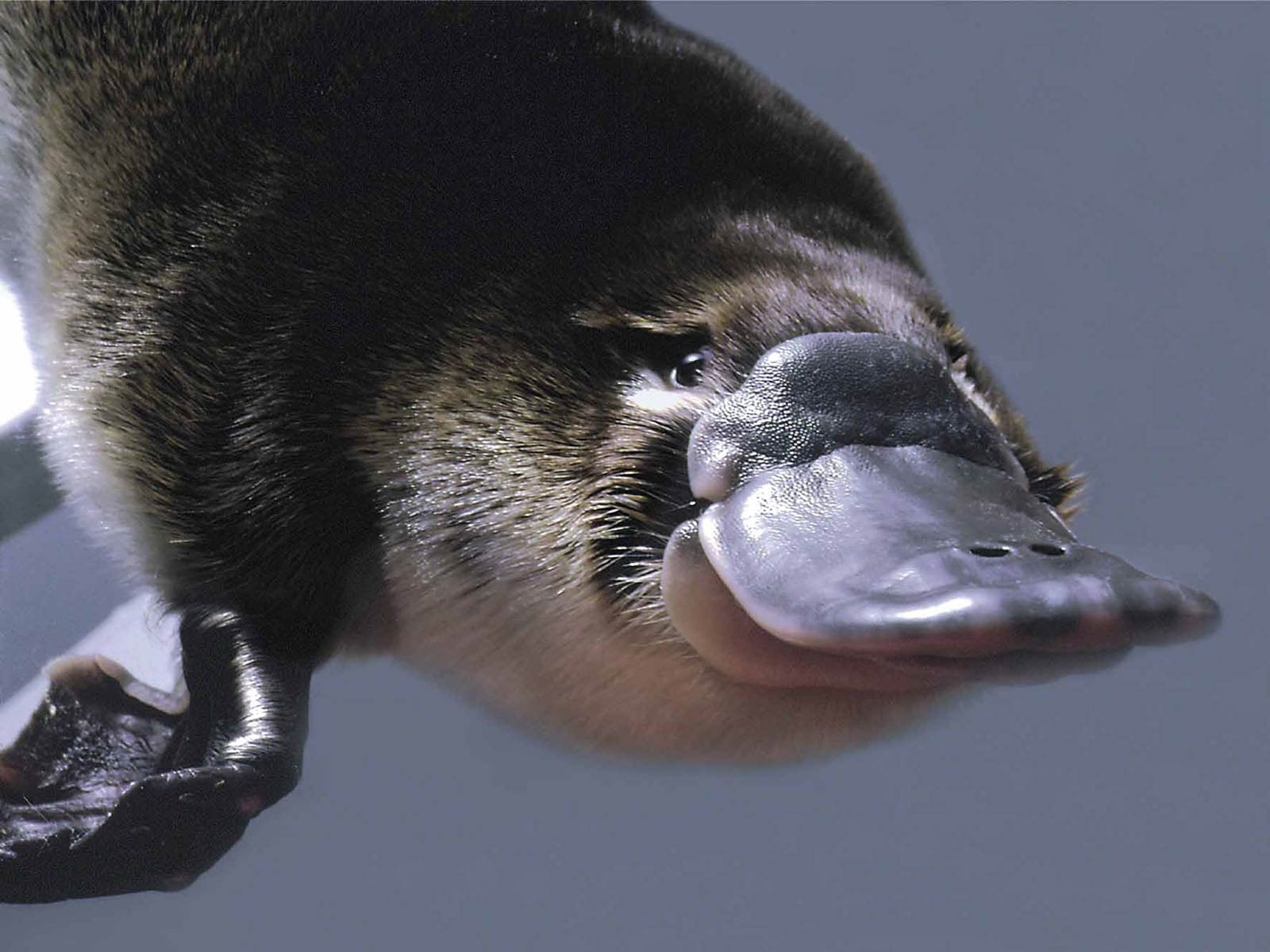 Description: A close up of a bird with its mouth open and a nose hanging out of it's mouth.
