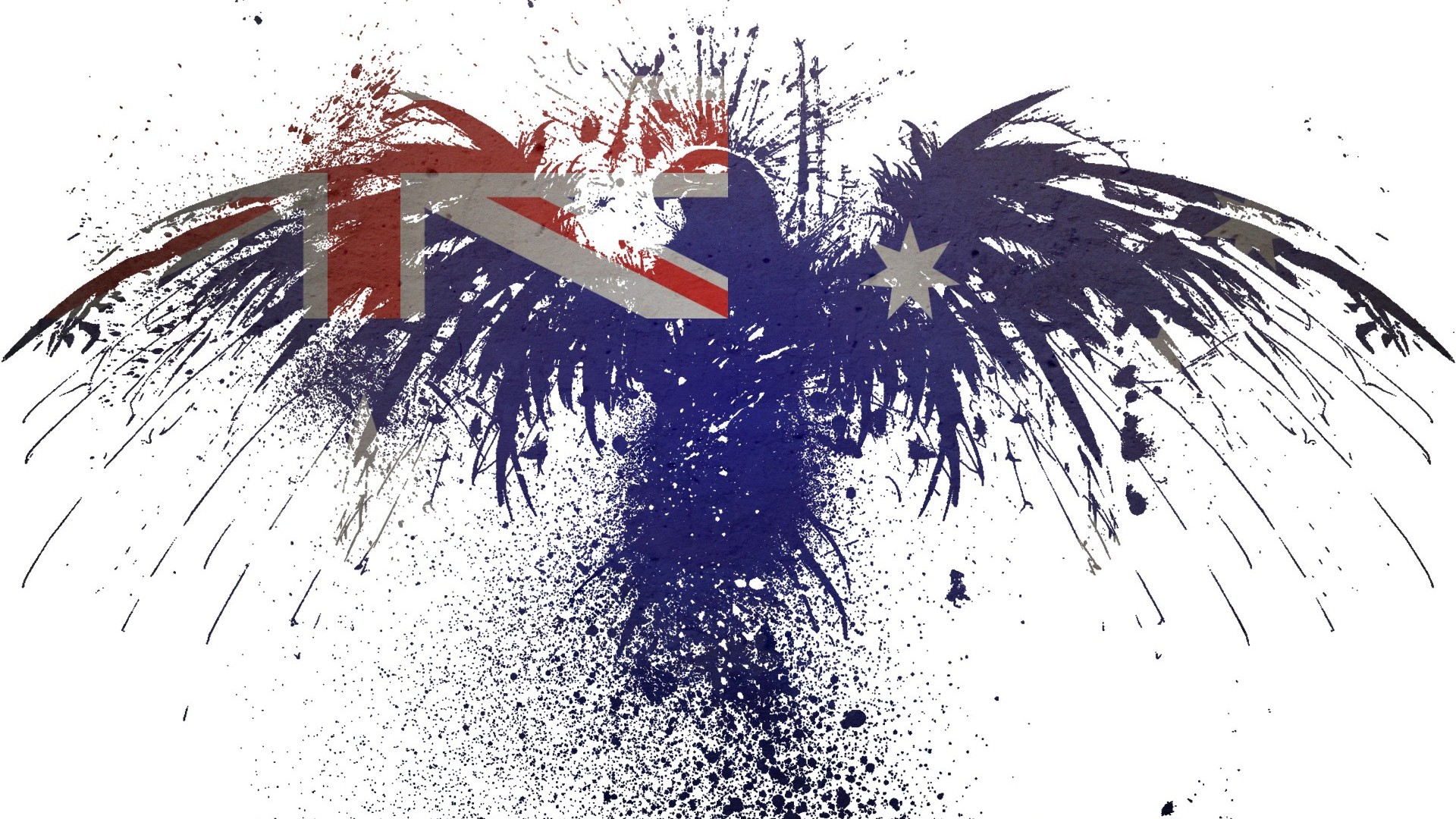 Description: A bird with a flag on it's back and wings painted in blue and white with a red star.