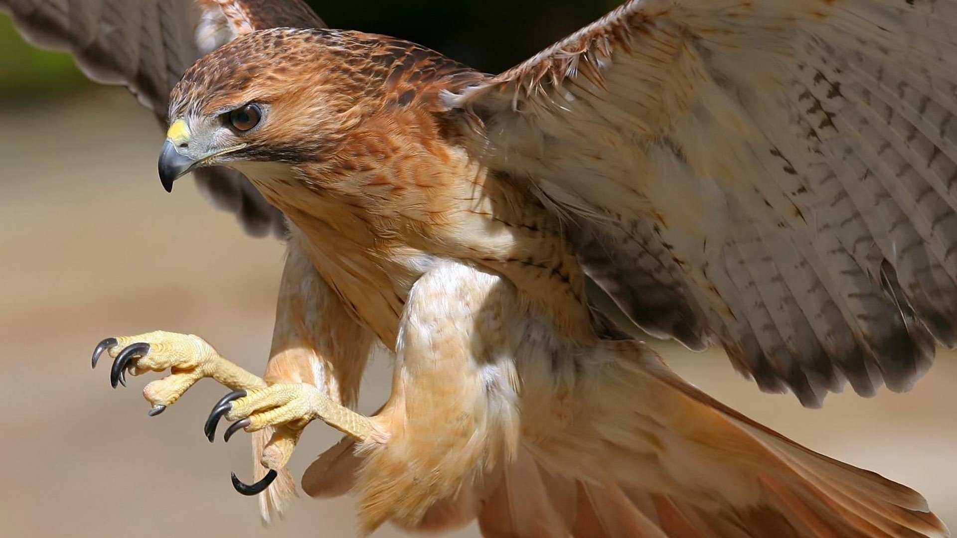 Description: A bird of prey with its wings spread out and spread out its wings.