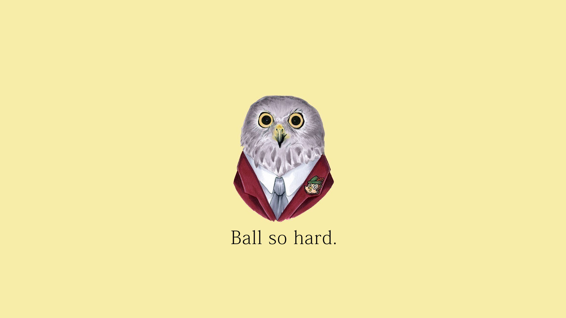 Description: A bird with a red jacket and tie on it's head with words ball so hard on it.
