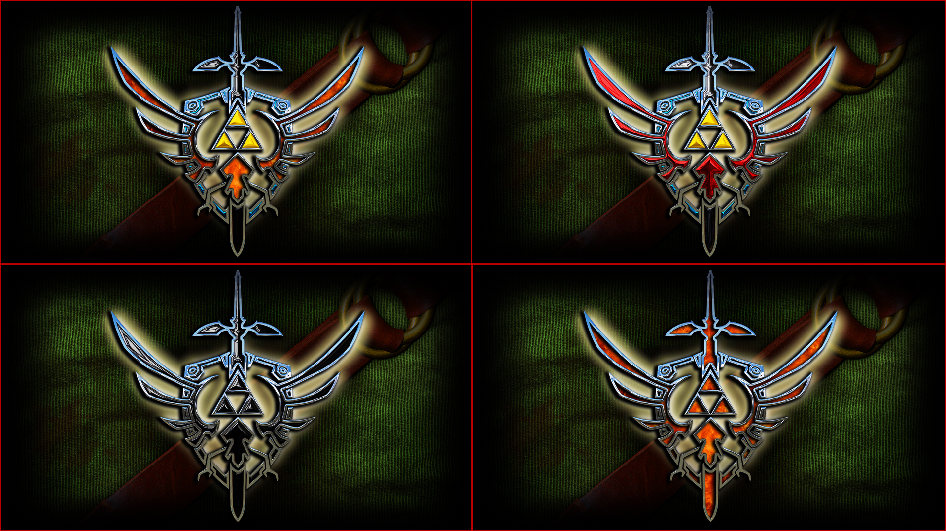 Description: Four pictures of a bird with a sword and a sword in it's mouth.