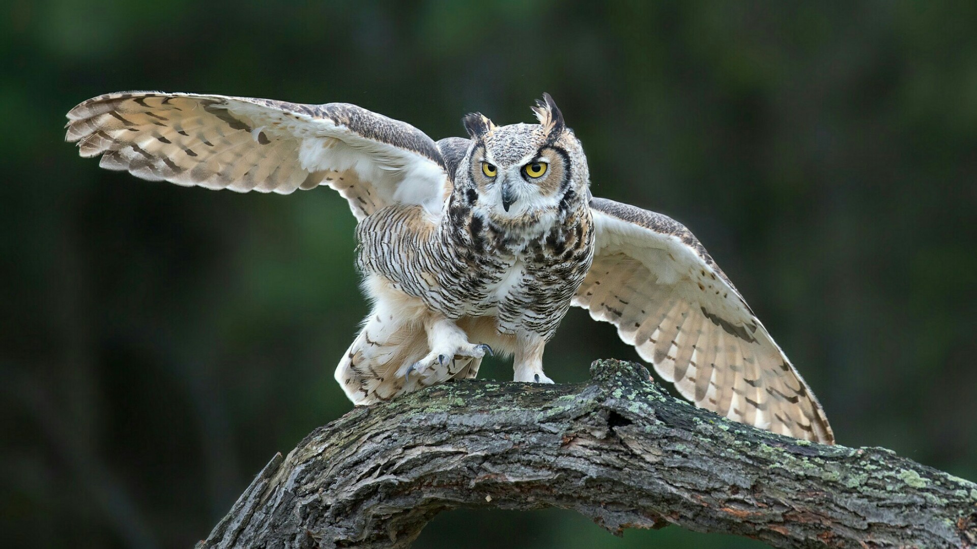 Description: A bird with wings spread sitting on a branch of a tree branch with its wings spread wide open and it's eyes open.