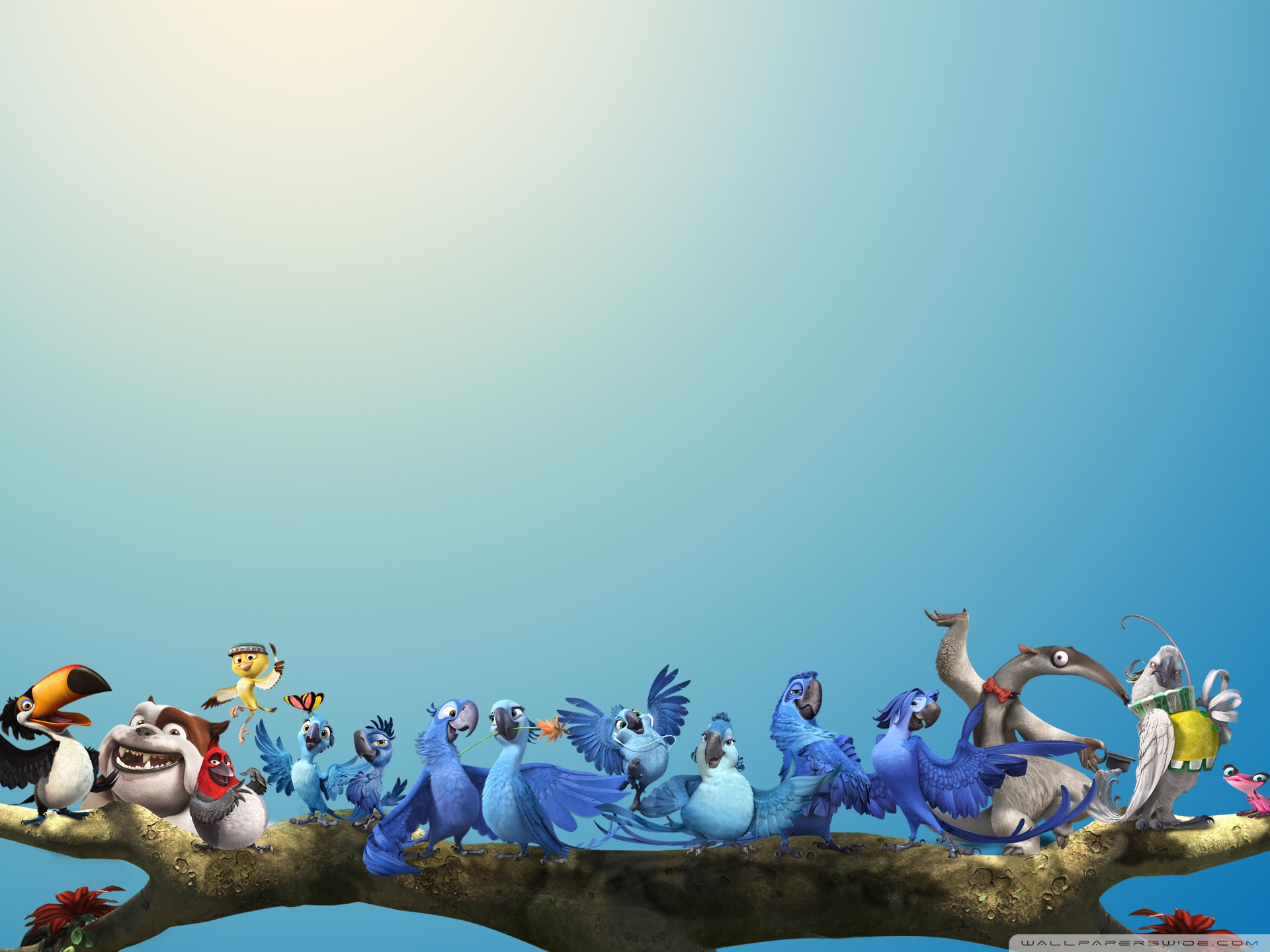 Description: A group of birds sitting on top of a tree branch with a sky background in the background and a blue sky.