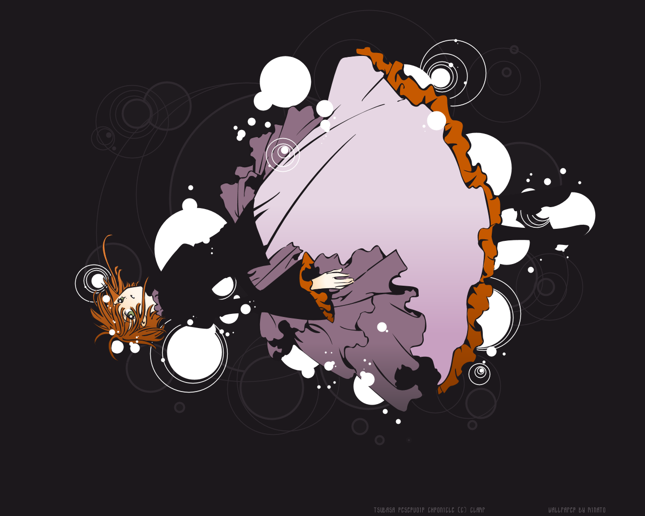 Description: A black and white picture of a woman with a cat on her back and a black background with orange and white circles.