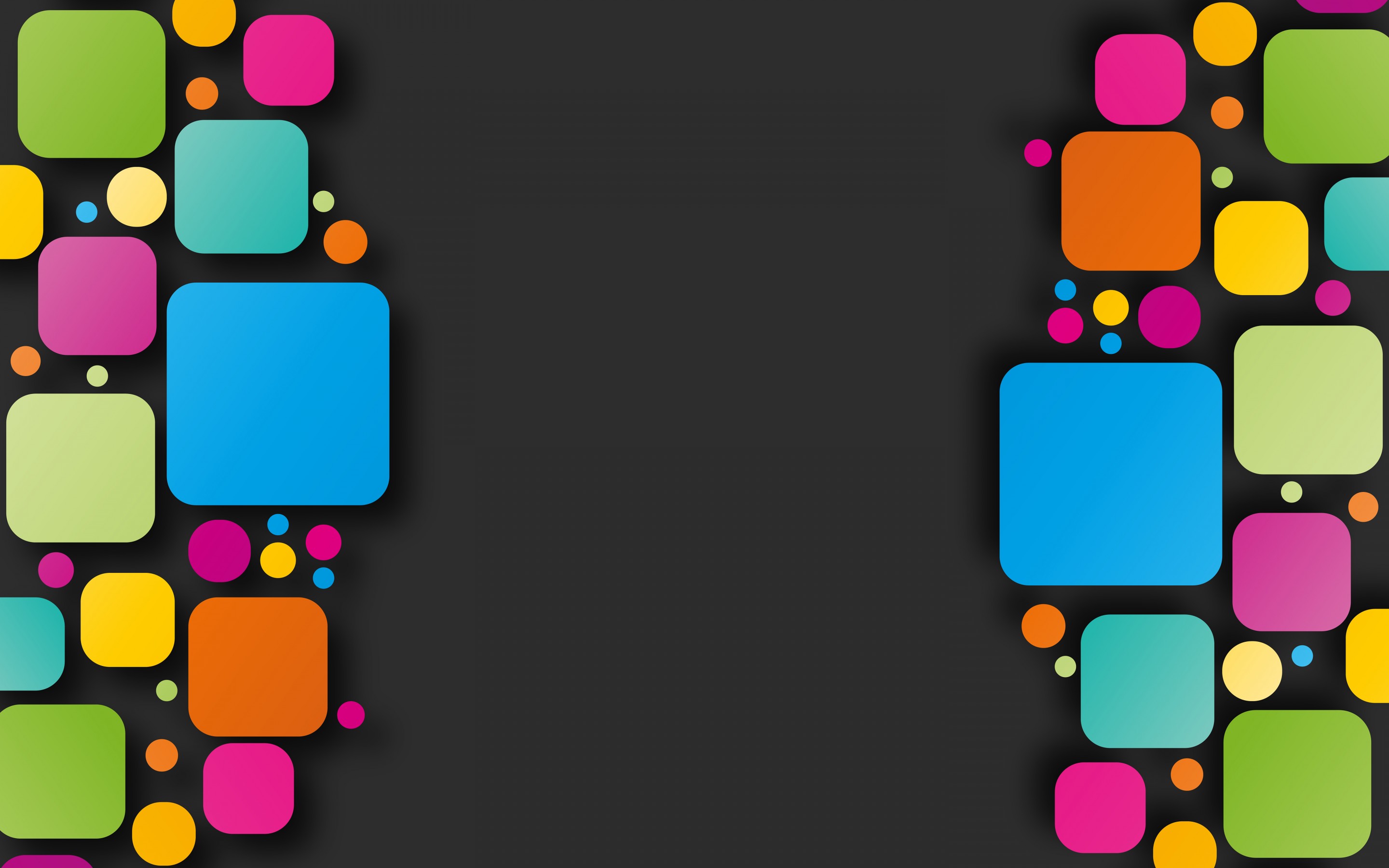 Description: A black background with colorful squares and bubbles on it.