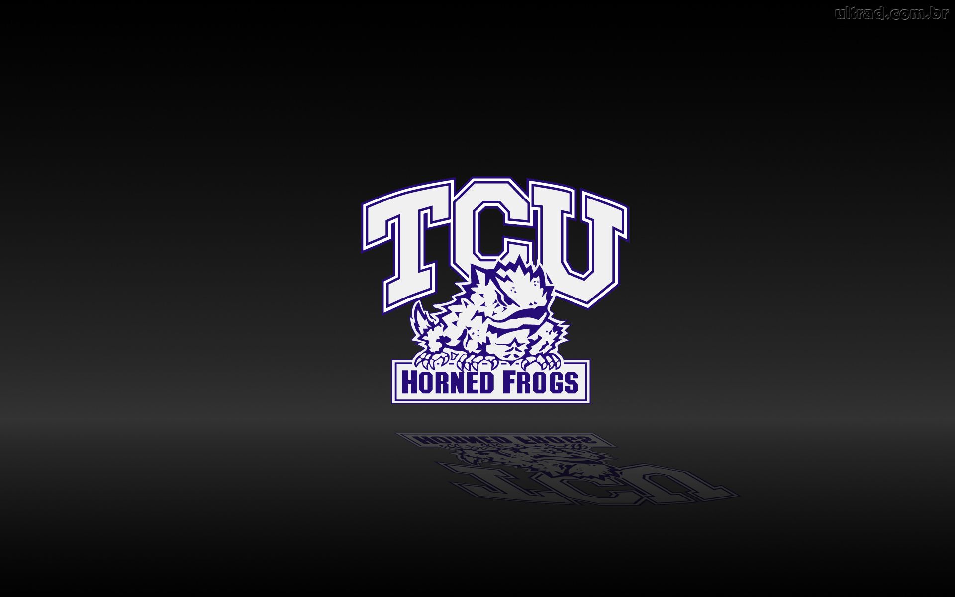 Description: A black background with a tcu logo on it and a reflection of a horse in the background of the image.