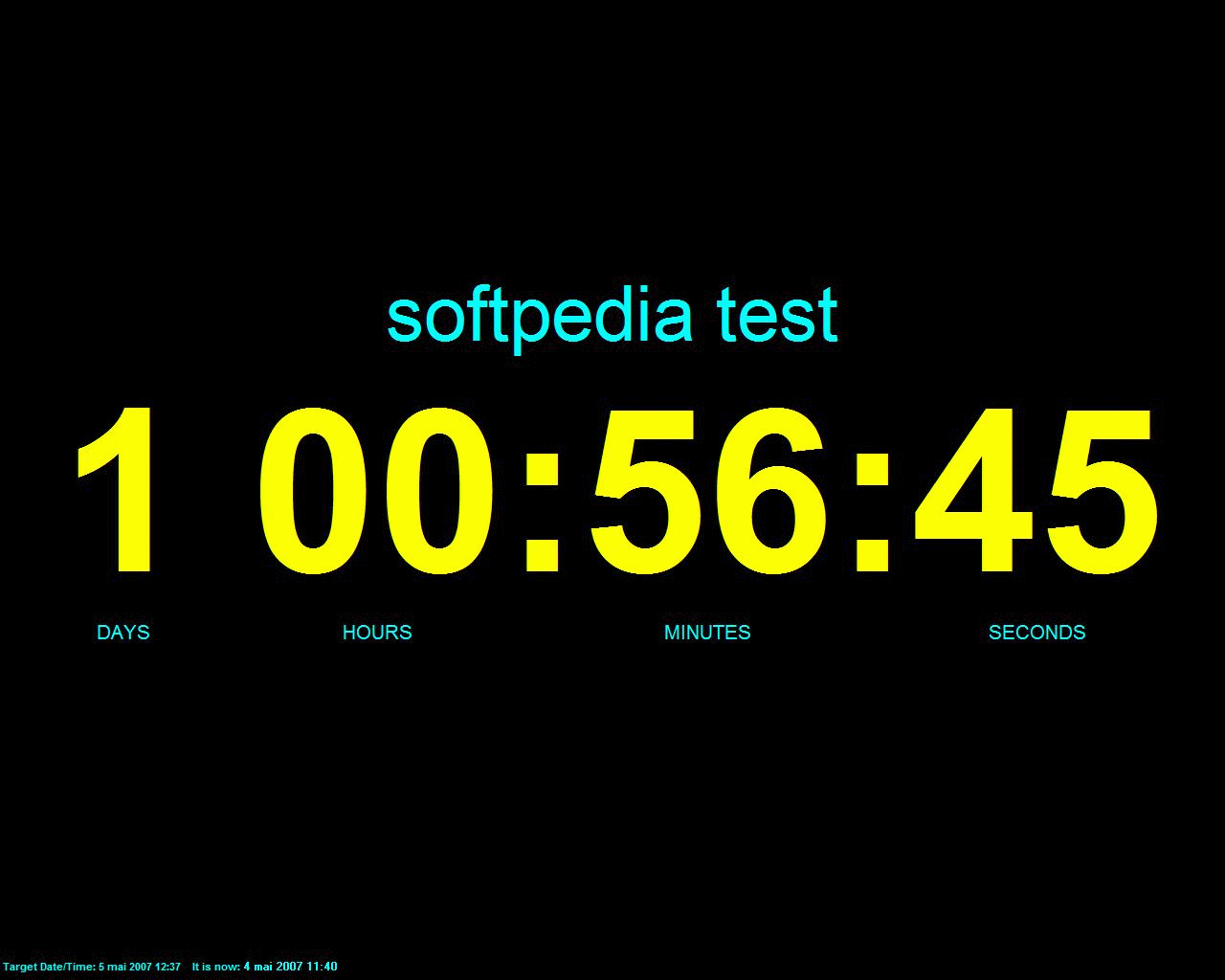 Description: A black background with a yellow clock and the words sofpedia test on it's side.