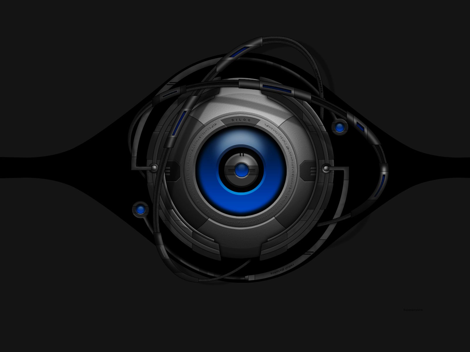 Description: A black and blue object with a black background and a black background with a blue circle in the center.