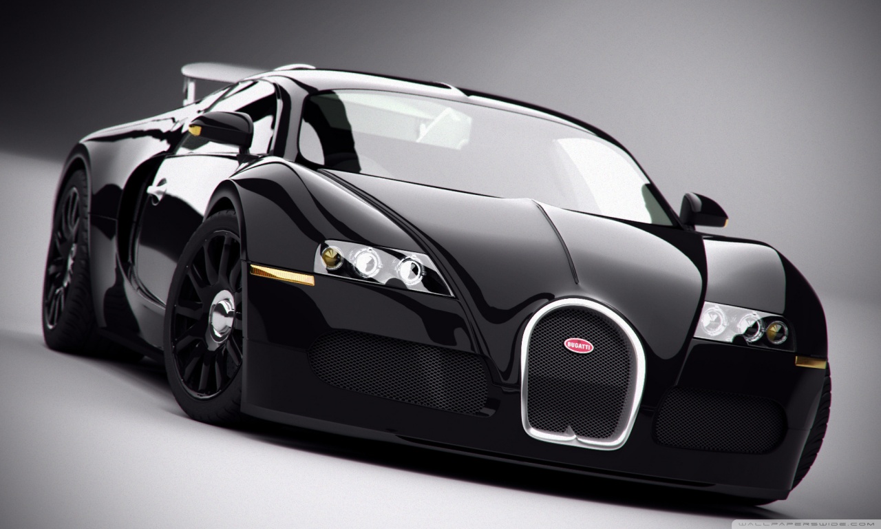 Description: A black bugatti car is shown in this image.