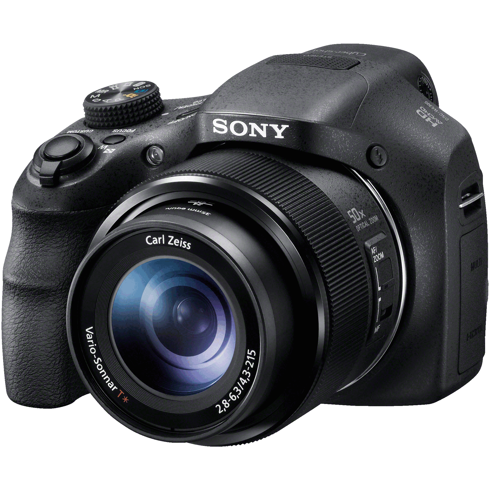 Description: A black camera with a lens attached to it's body and a flash light on top of it.