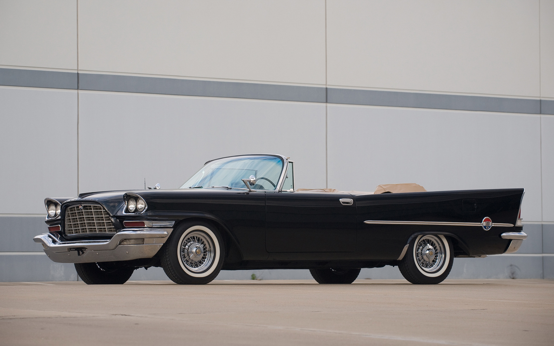 Description: A black car parked in front of a building with a roof down and a tan leather seat cover on the back.