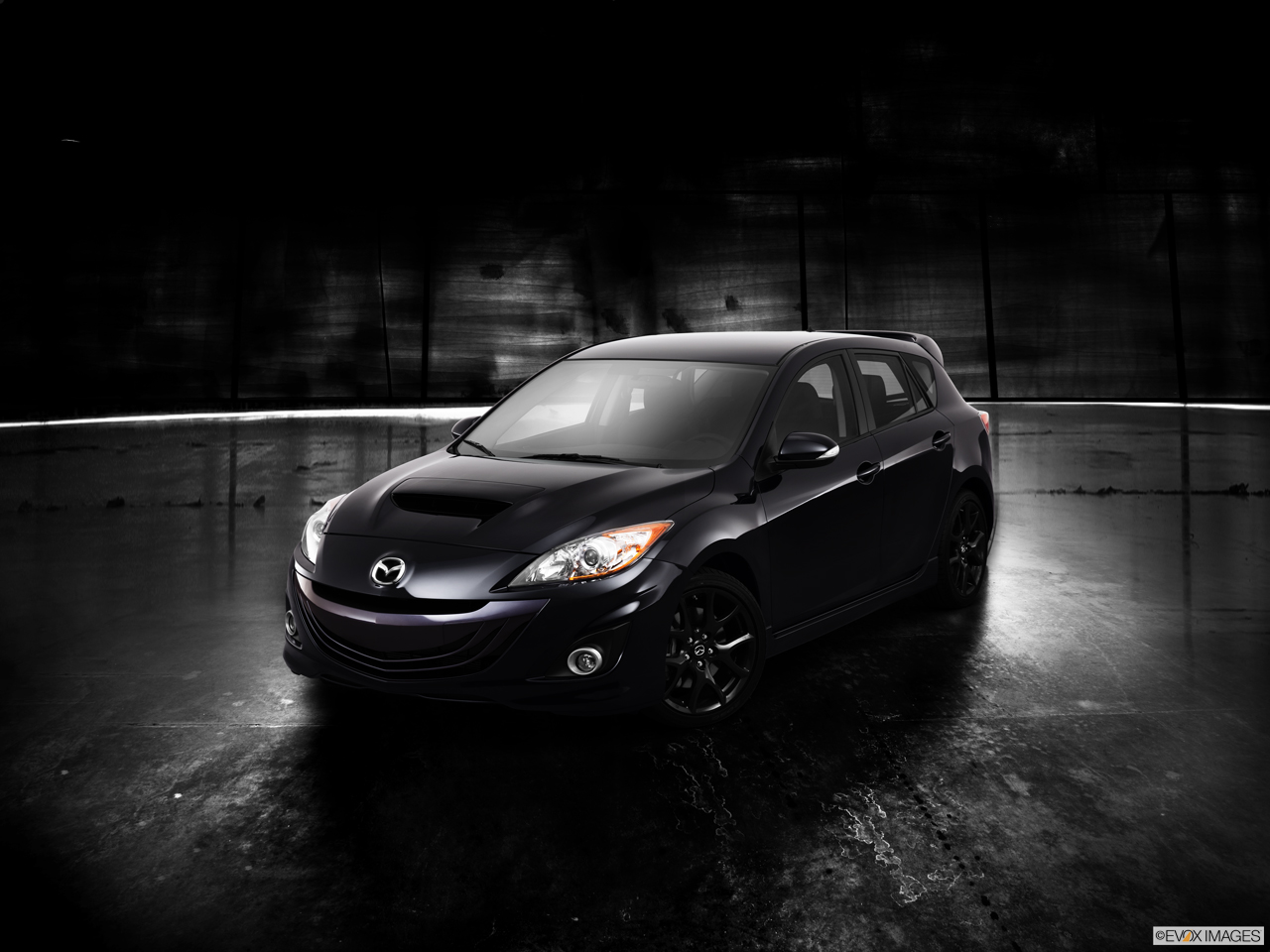 Description: A black car is parked in a dark room with a black background and a black light behind it is a black car.