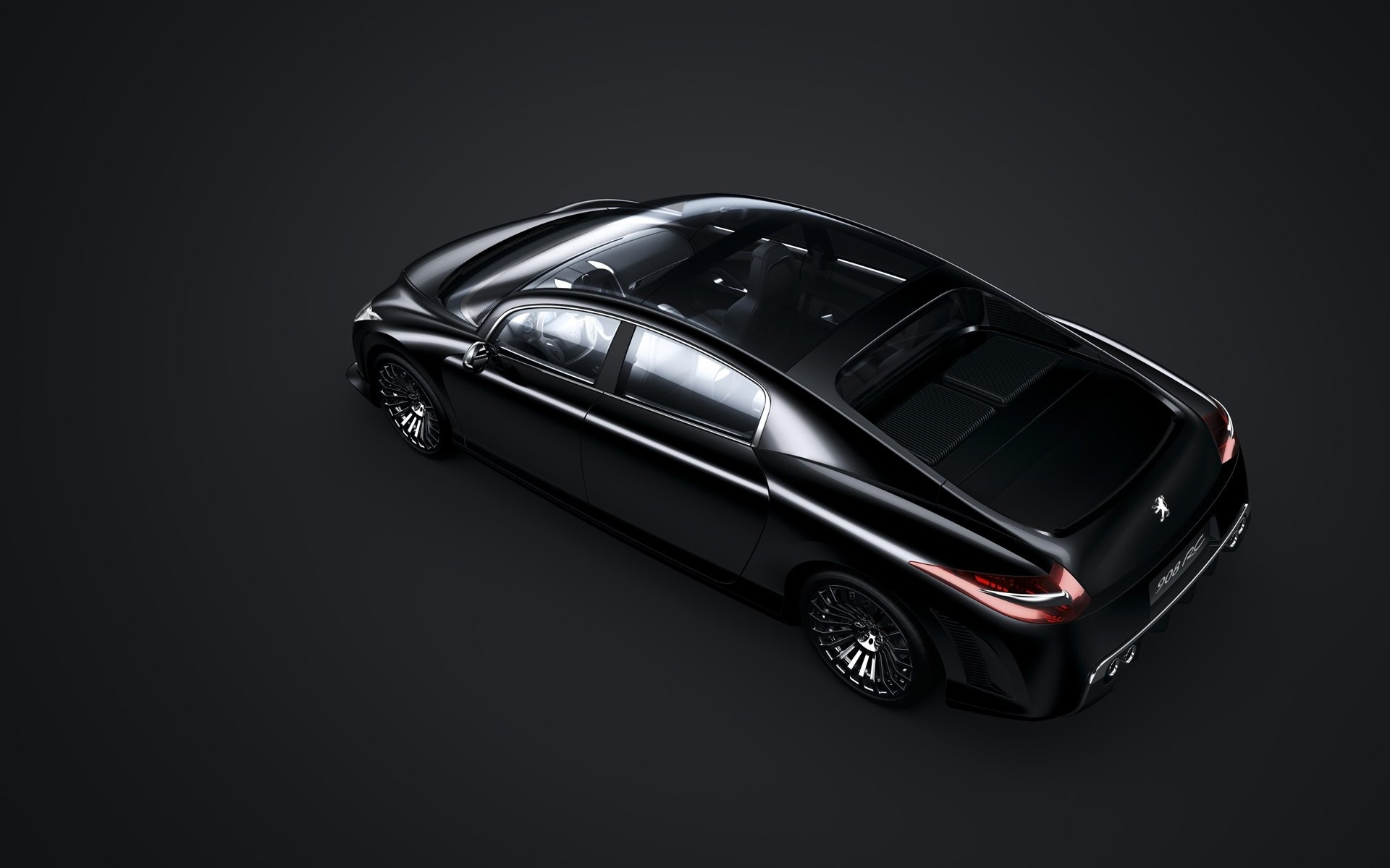 Description: A black car is shown from above on a black background with a black background and a black background with a black car.