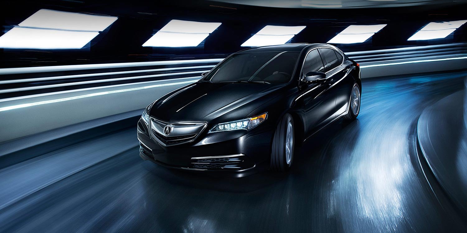Description: A black car driving down a tunnel in a tunnel way with windows on both sides of it and a light at the end of the tunnel.