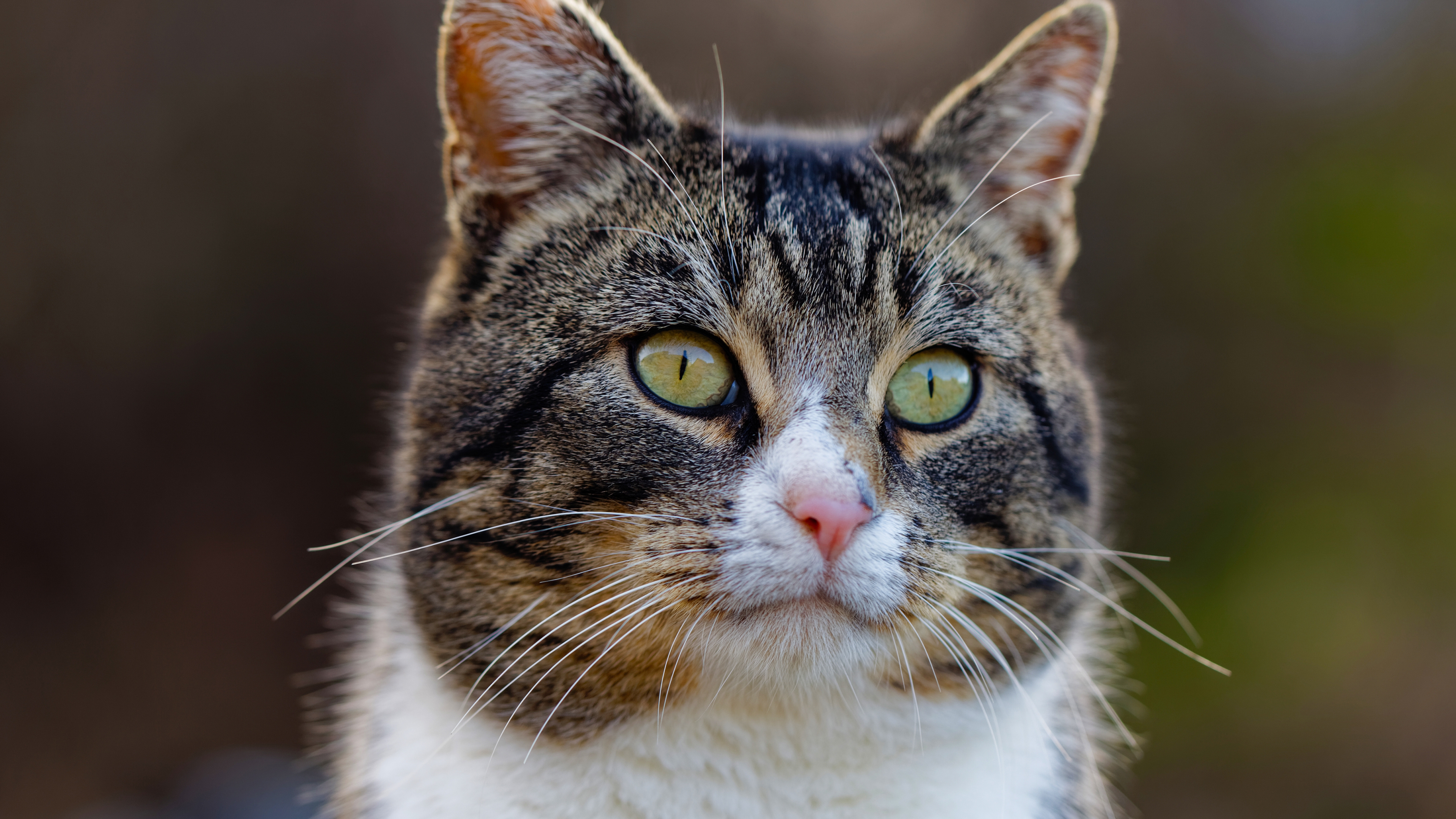 Description: A close up of a cat with a blurry background and a blurry background behind it.