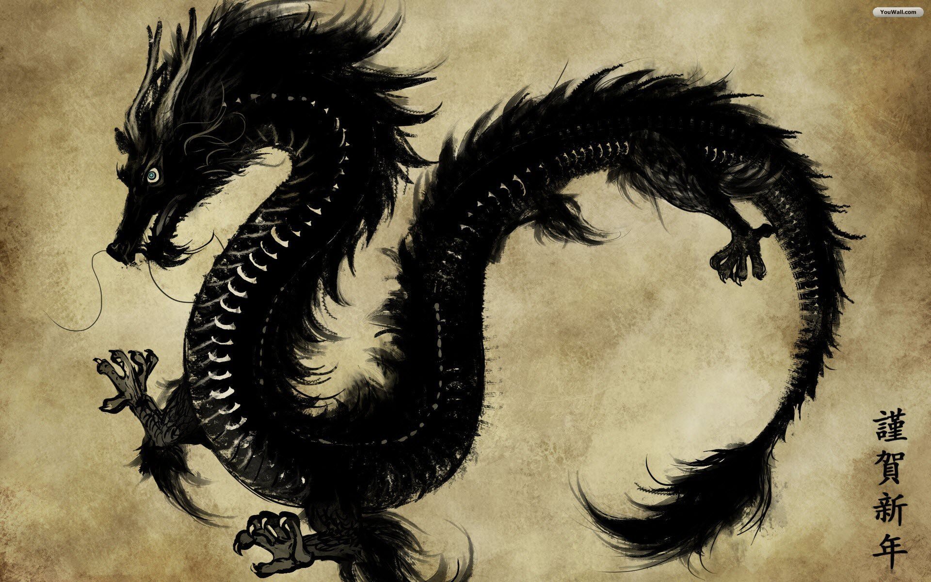 Description: A black dragon with a chinese writing on it's side and a chinese character on the back of it.