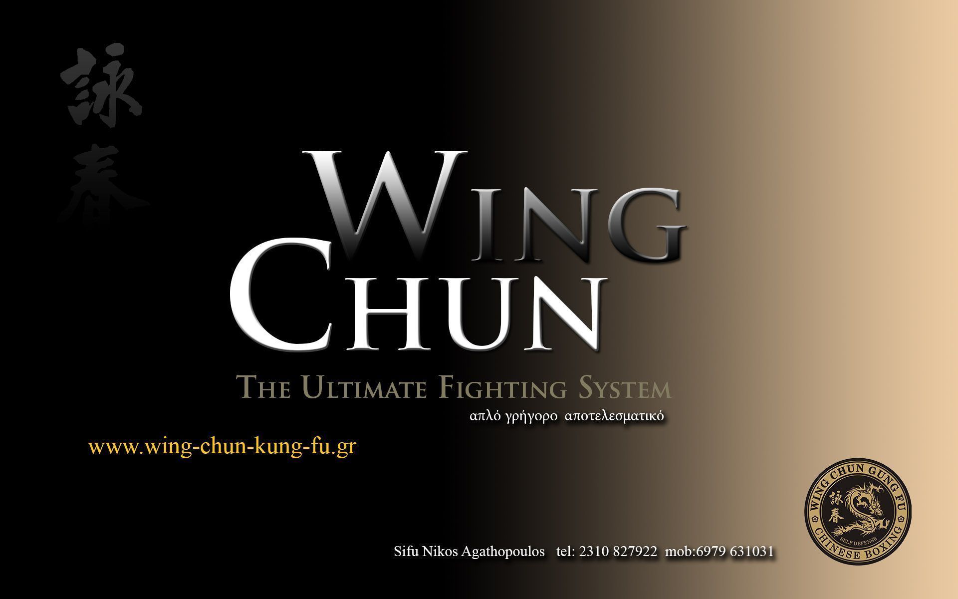 Description: A black and gold background with a chinese symbol and the words wing chun on it.