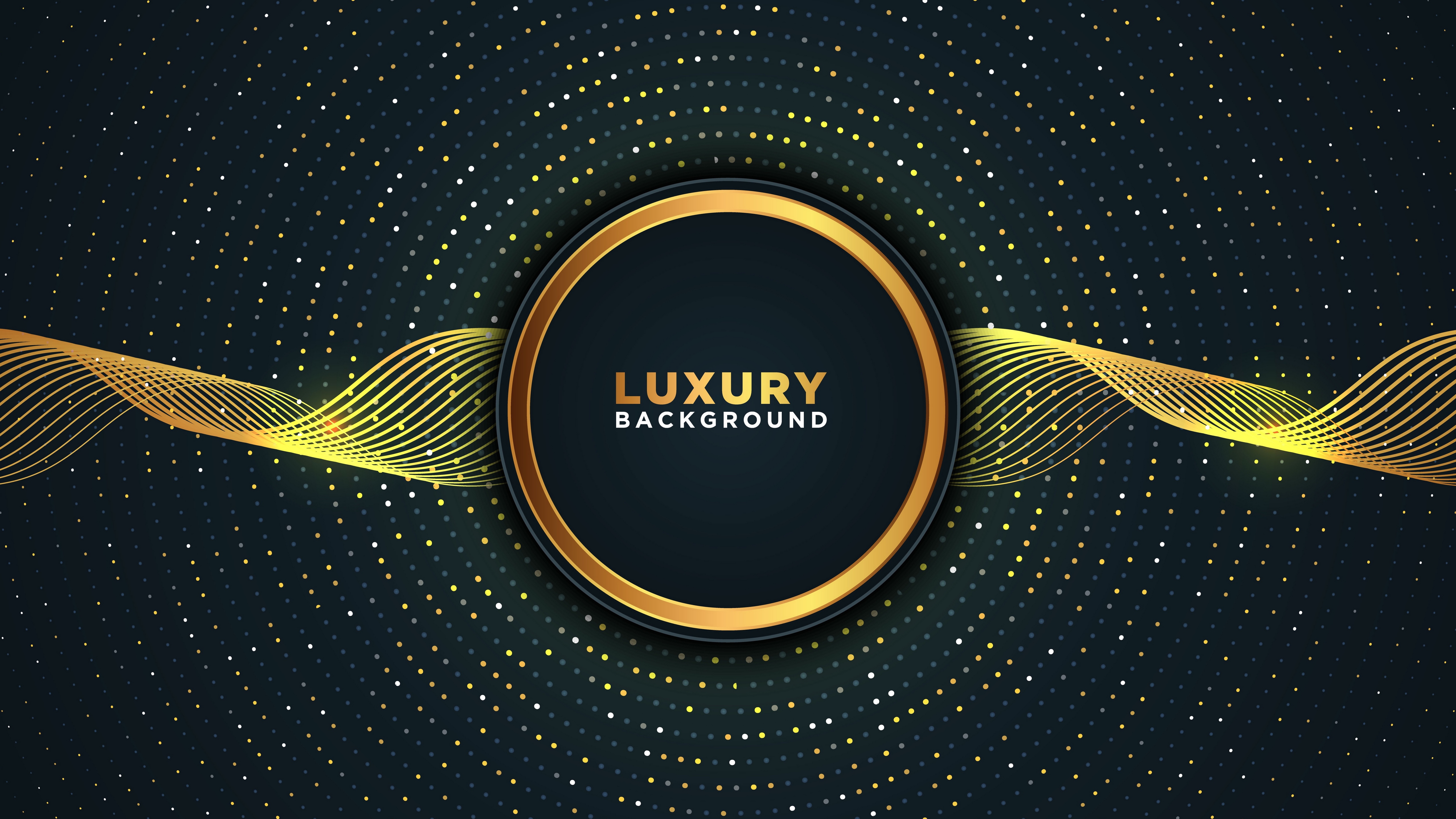 Description: A black background with a gold circle and a wavy design in the middle of it with a gold circle on the bottom of the image.