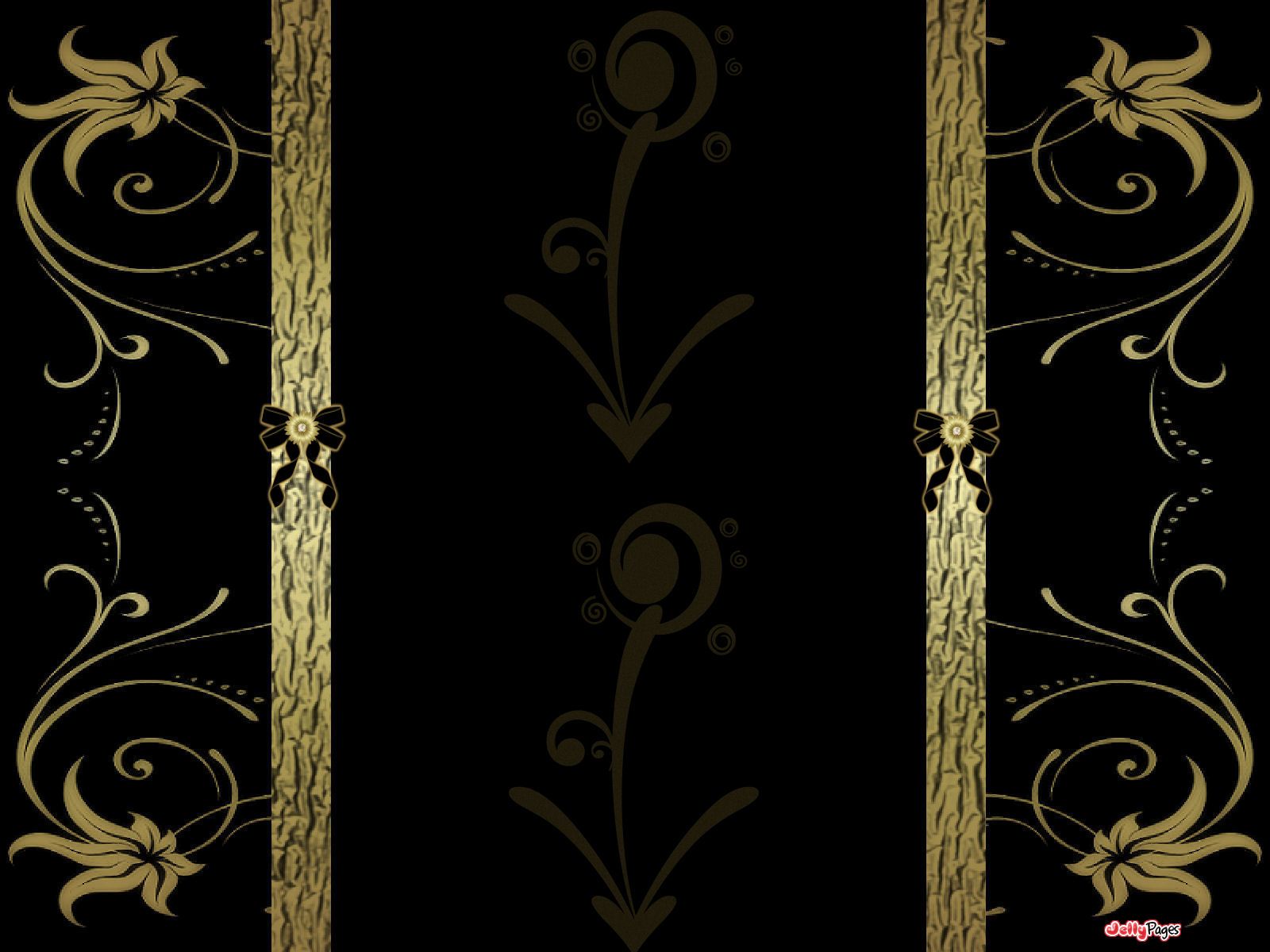 Description: A black and gold striped background with a floral design on it's side and a gold stripe on the bottom.