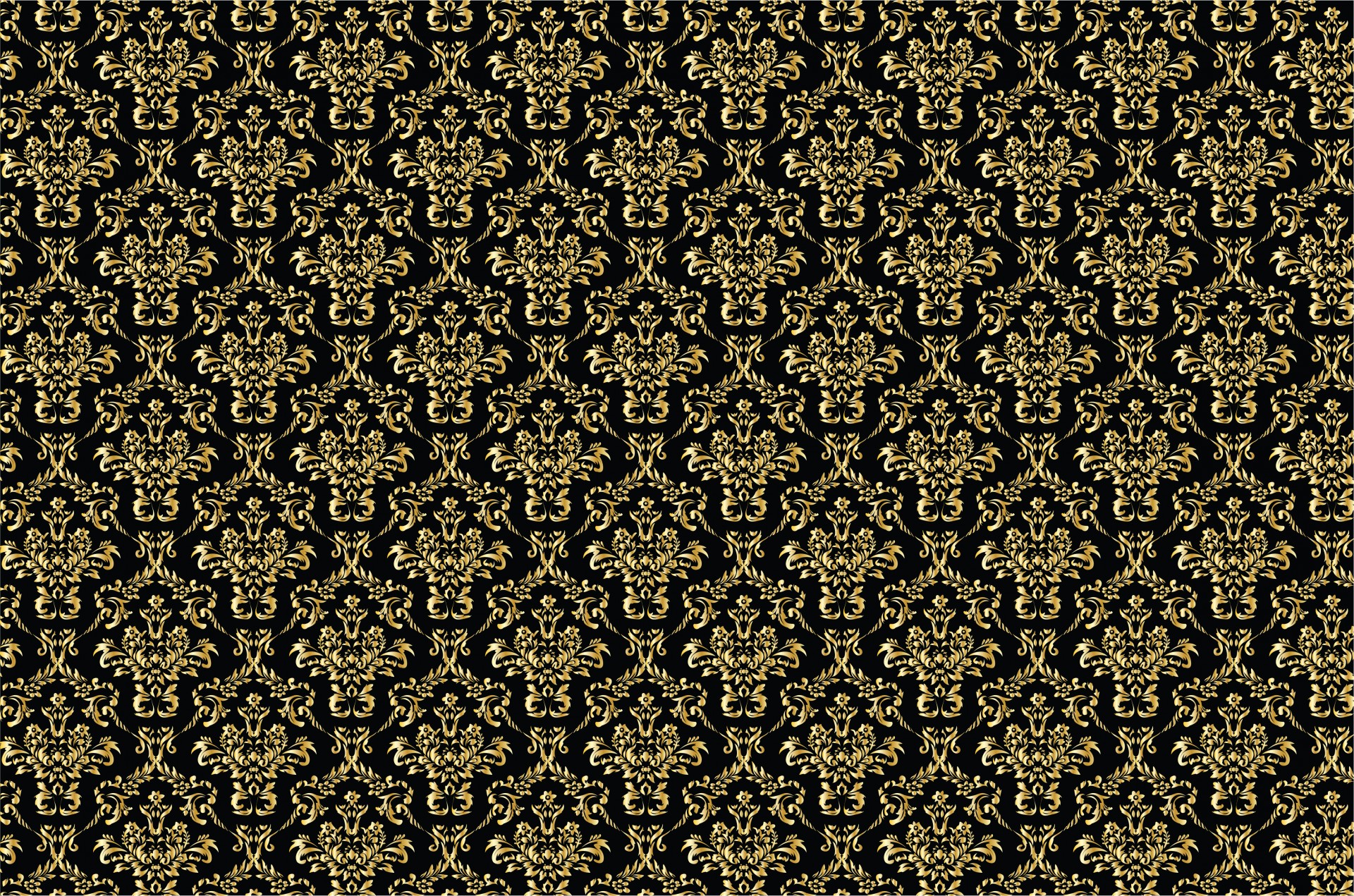 Description: A black and gold wallpaper with a pattern of flowers and leaves on it.