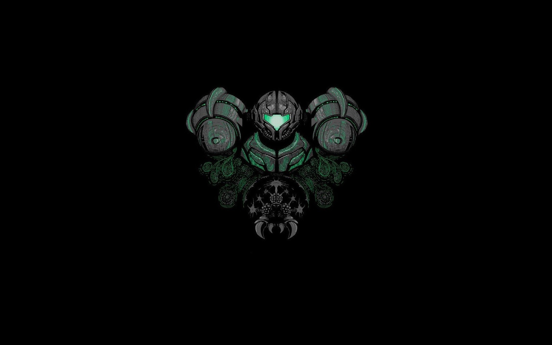 Description: A black background with a green and black design on it's face and a green and black design on the face.