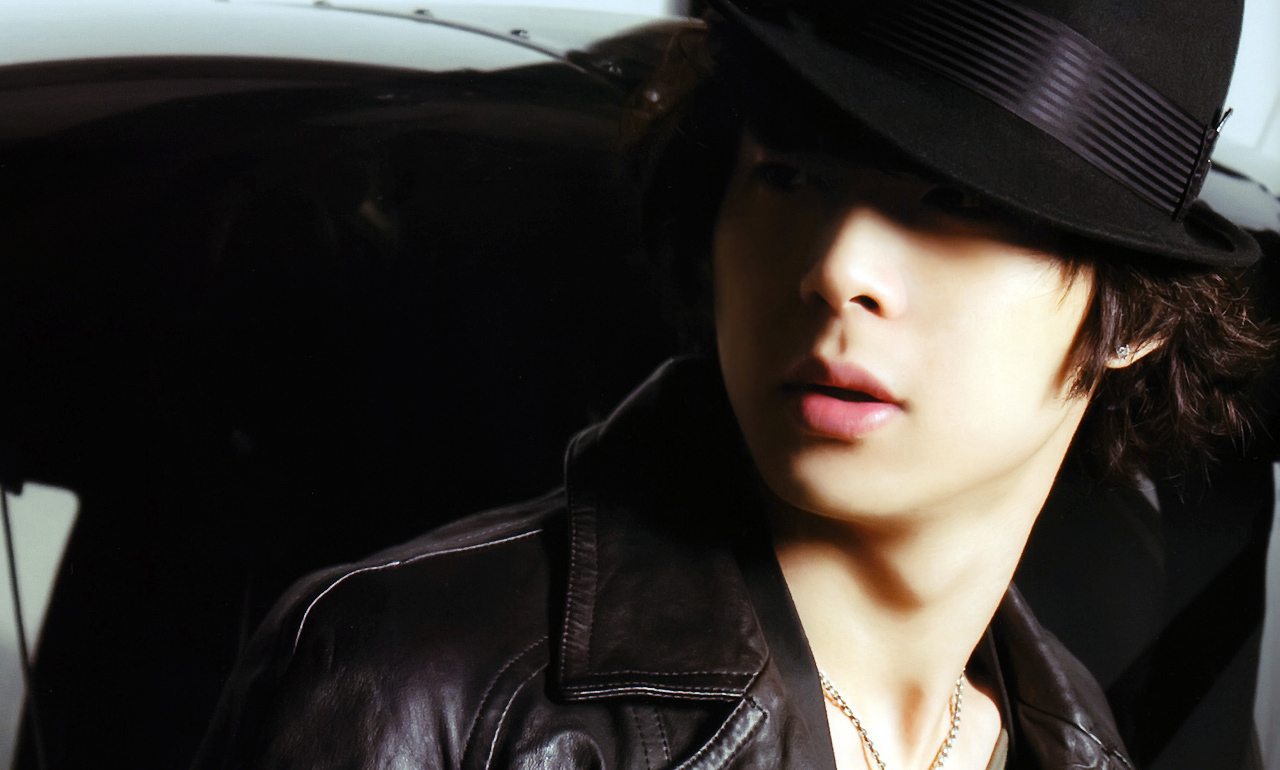 Description: A man wearing a black hat and a leather jacket with a chain on his neck and a black jacket on his shoulder.