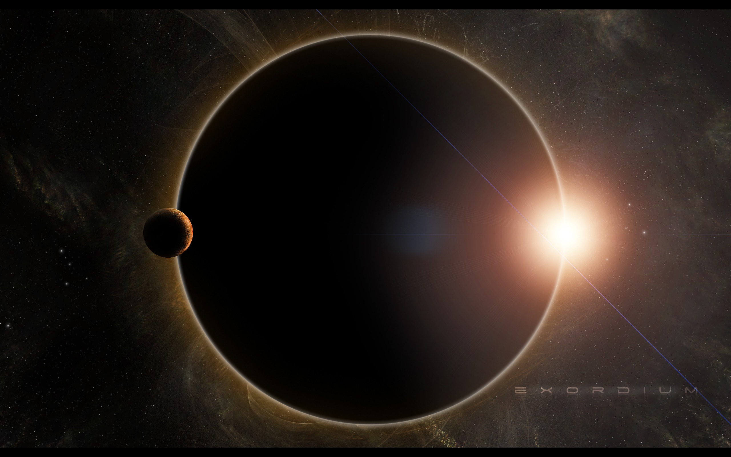 Description: A black hole with a bright light in the middle of it and a star in the background with a bright light in the middle of it.