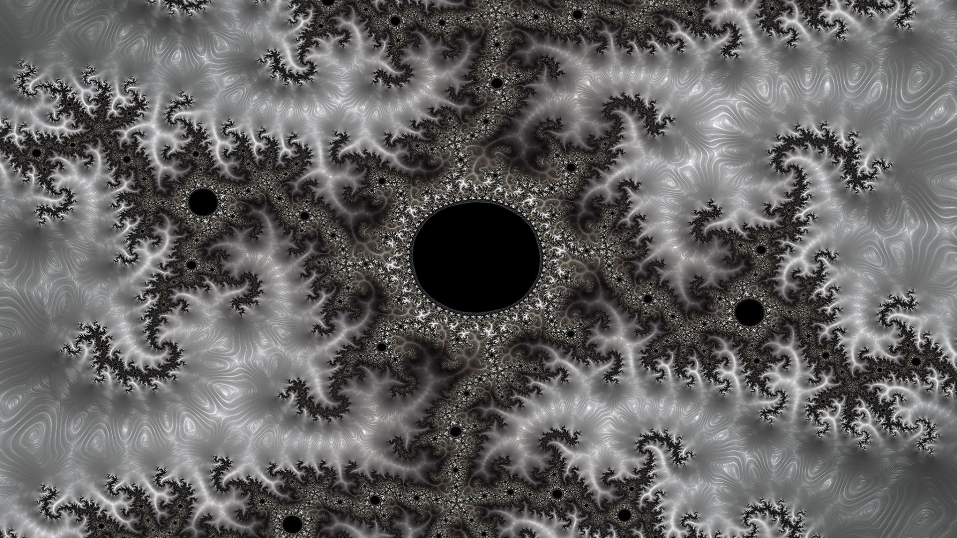 Description: A black hole in the middle of a gray and white background with a black center in the middle of the image.