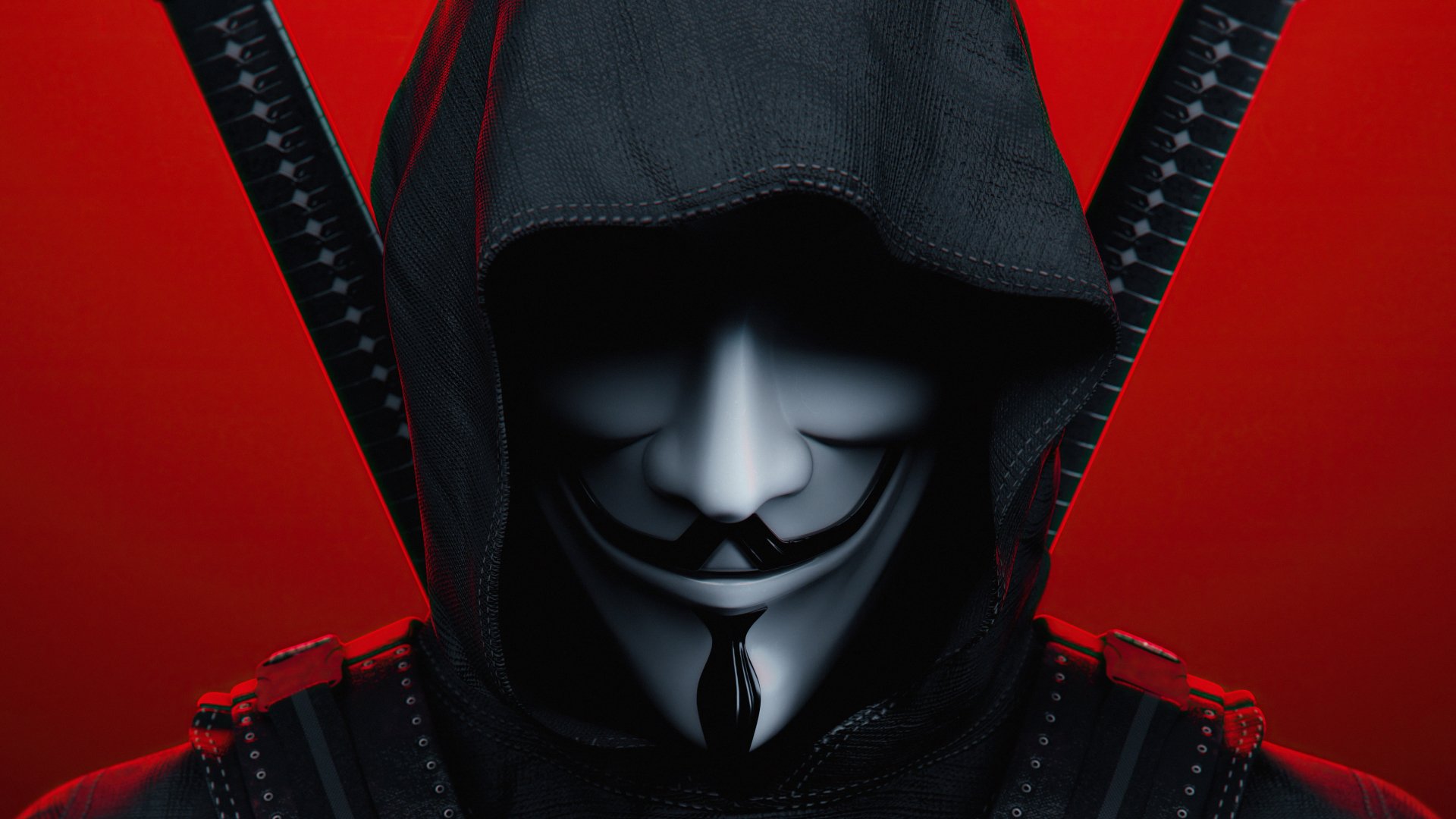 Description: A man in a black hooded suit with a mask and two swords in his hands.