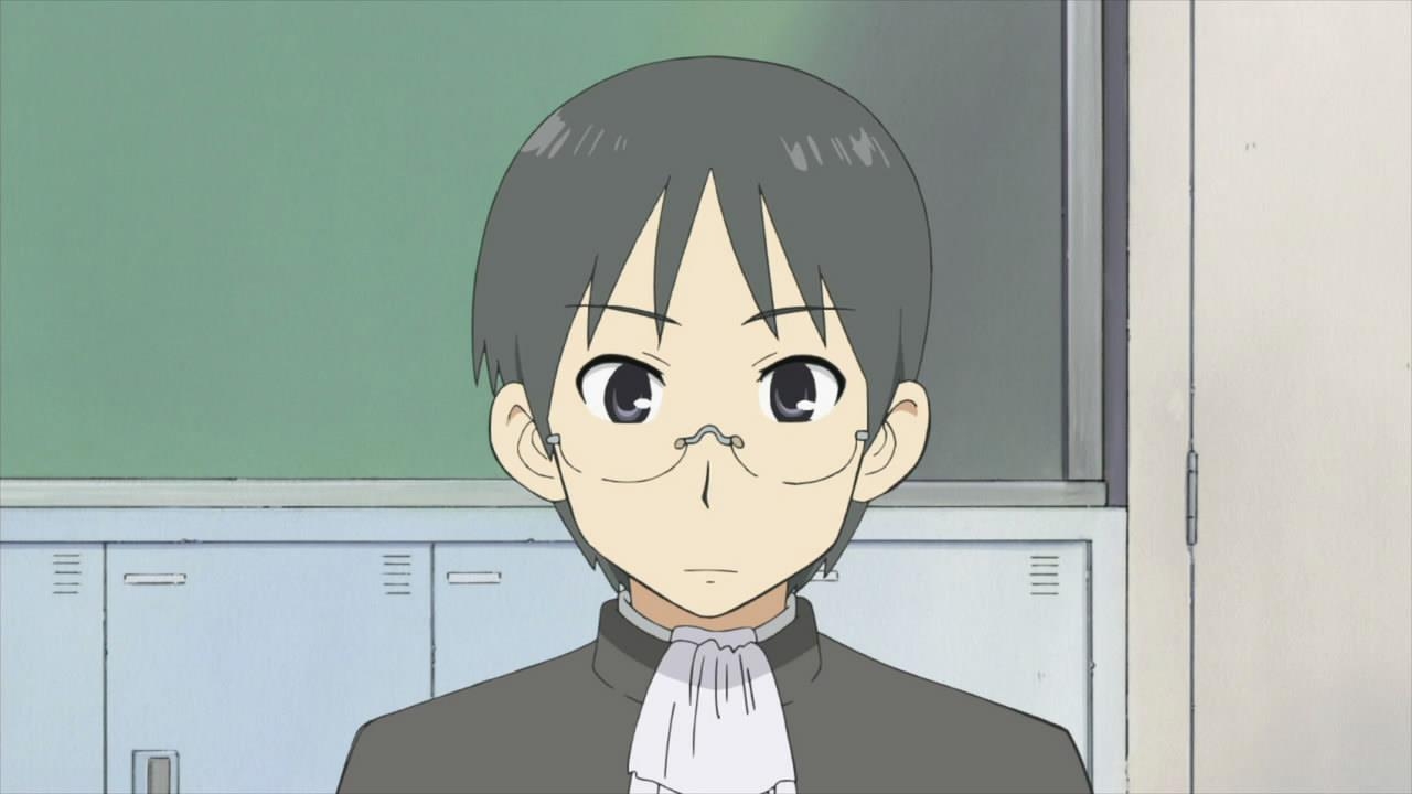 Description: A person with a black jacket and a white shirt and a green wall and a black and white door.