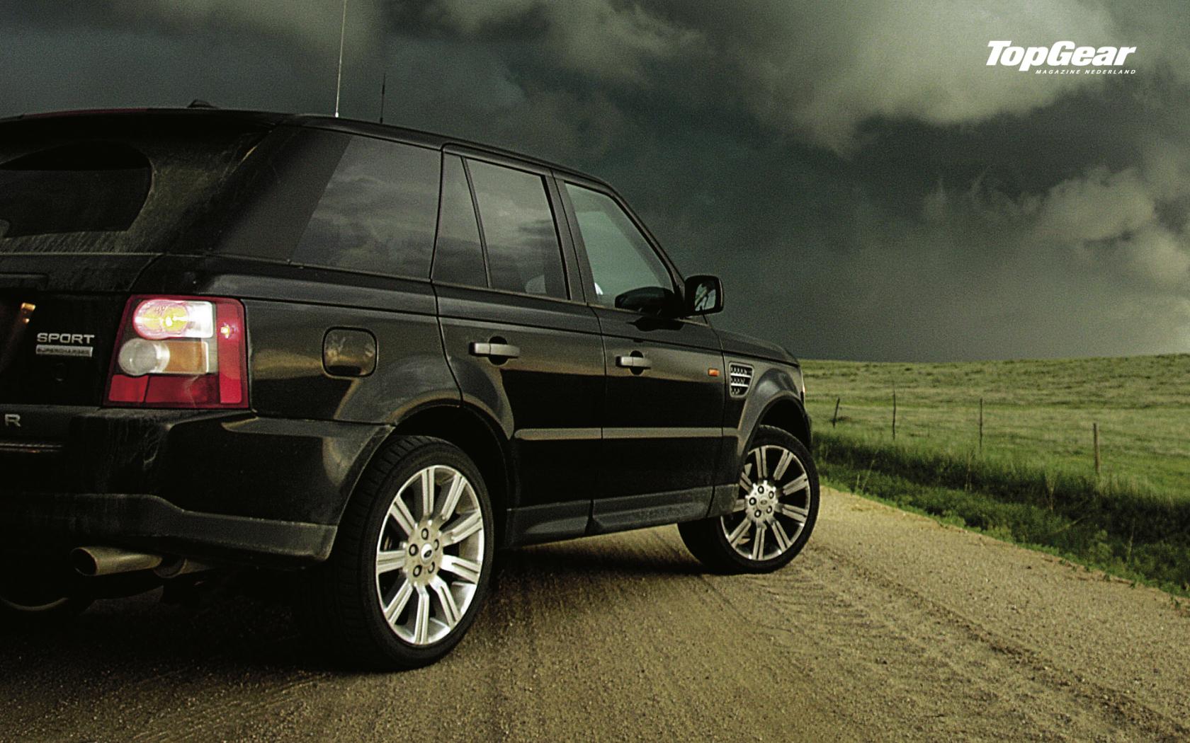 Description: A black land rover is parked on a dirt road in front of a field with a storm cloud in the background.