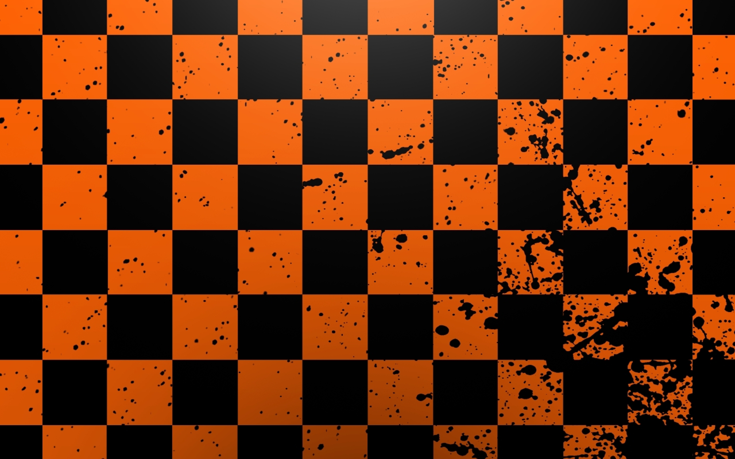 Description: A black and orange checkered background with a grungy effect on it's surface and a black and white checkerboard pattern.