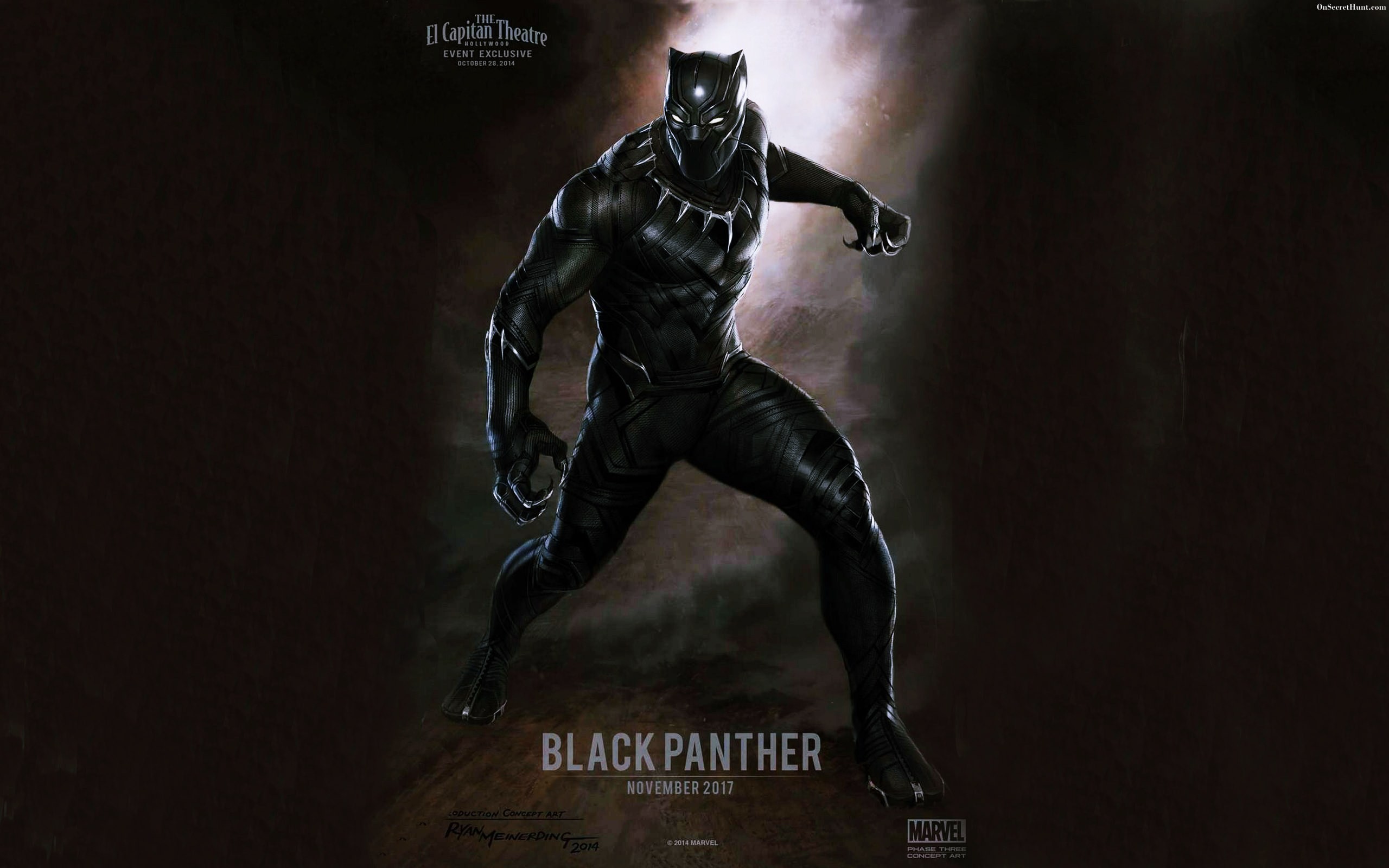 Description: A black panther character in a dark background with a spotlight behind him and a black background with a spotlight behind him.