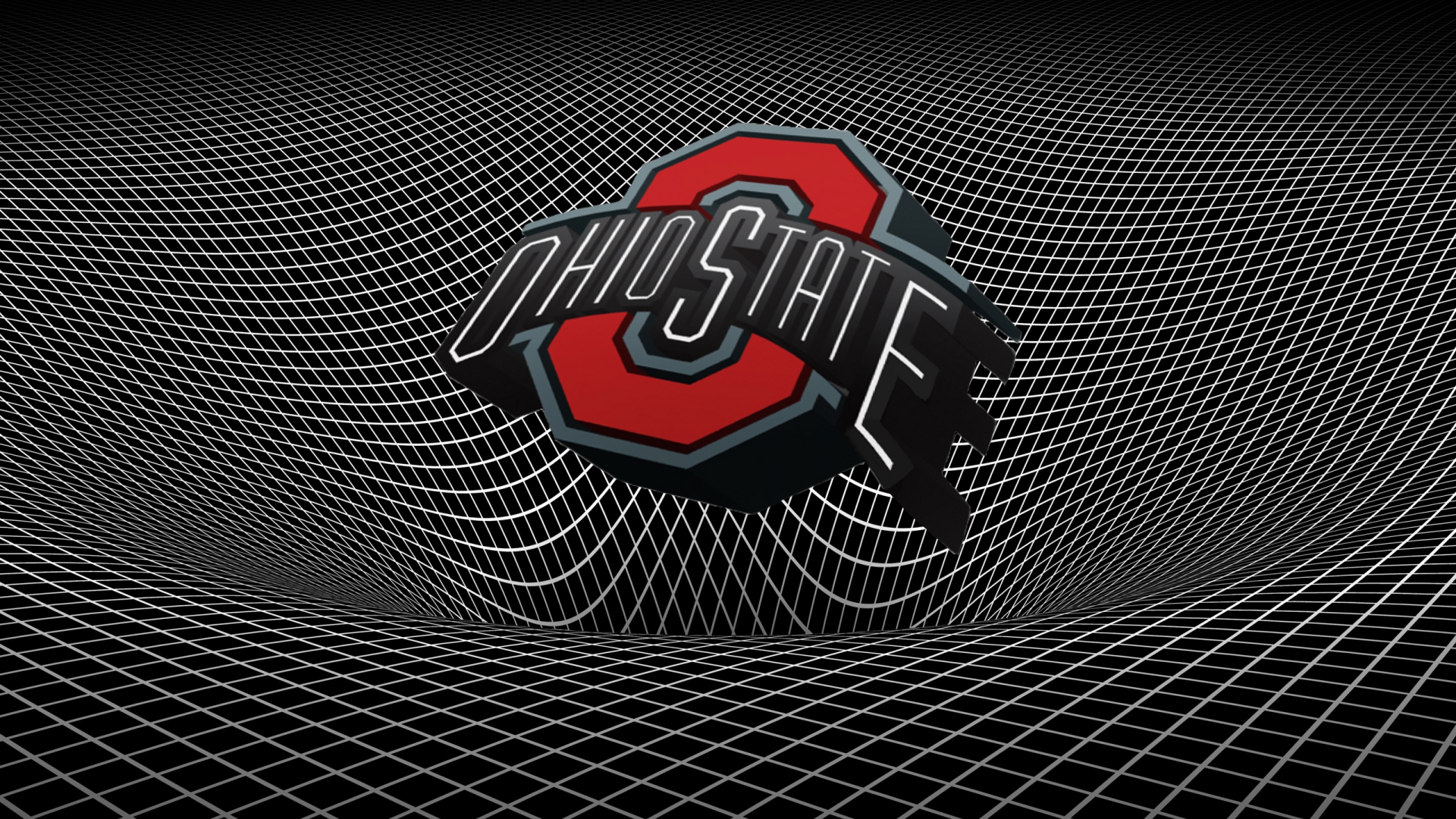Description: A black and red logo with the word ohio on it in a black background with a grid pattern and a red and white logo.