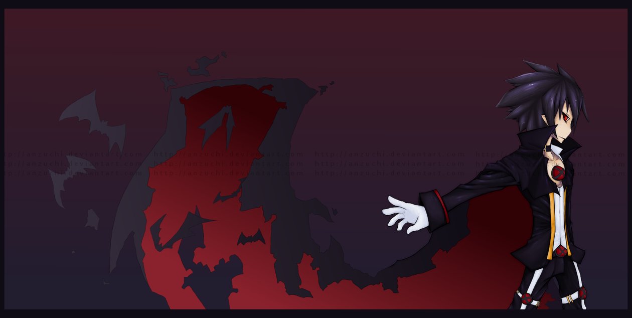 Description: A man in a black and red outfit standing in front of a red background with a black and white design.