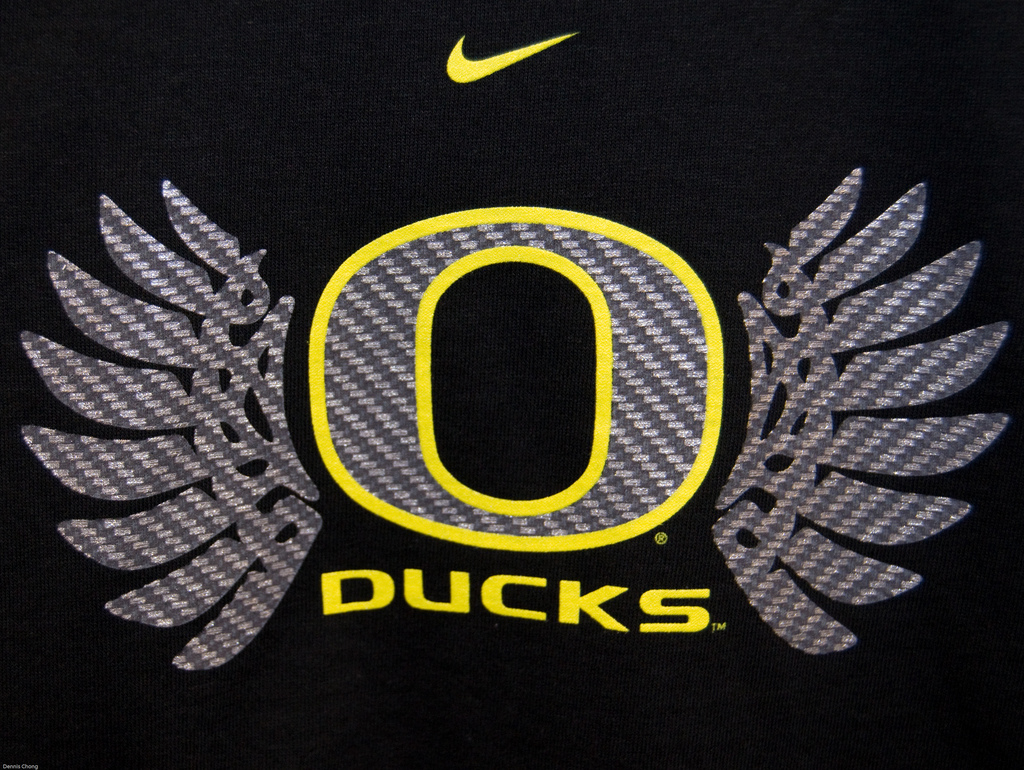 Description: A black shirt with a yellow o on it and a white and yellow logo on the front of it.