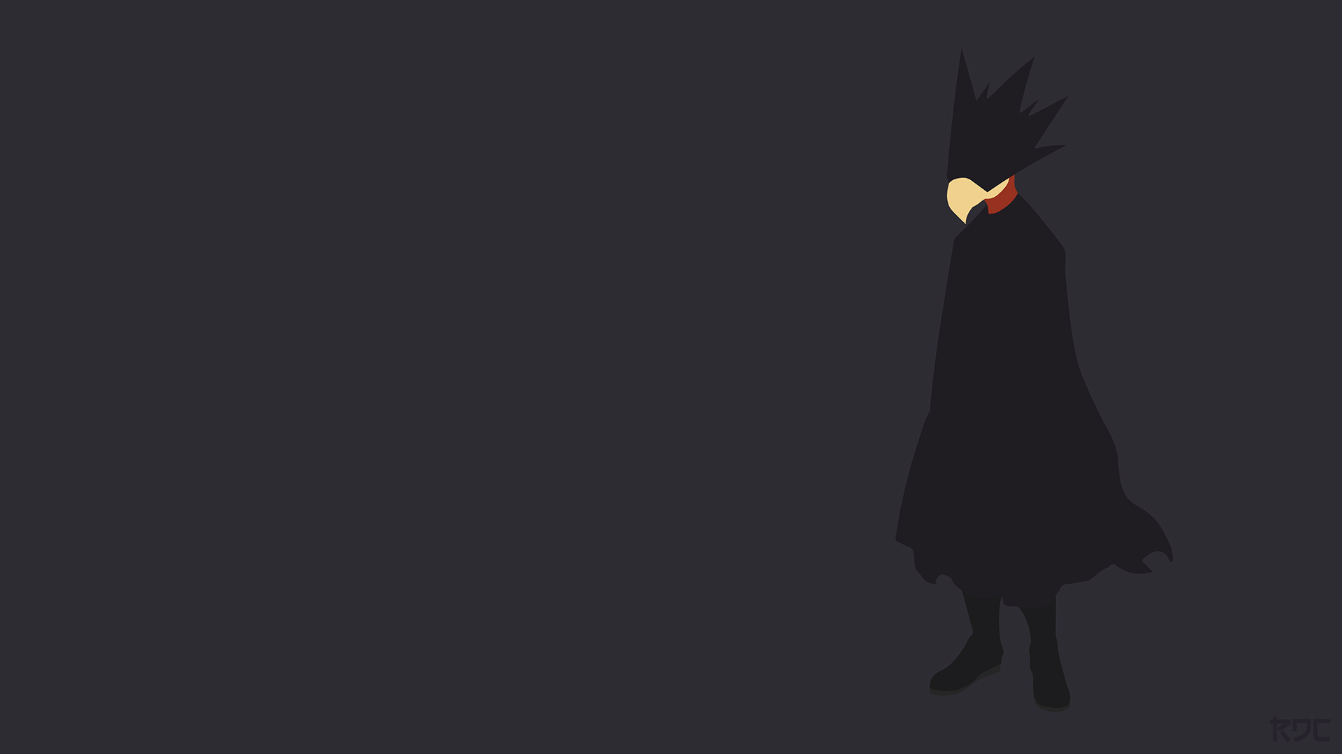 Description: A black silhouette of a person with a yellow eye and a black cloak on their head and a black background.