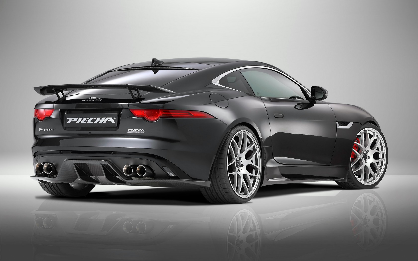 Description: A black sports car with a red tail light on it's side view in a studio setting with a gray background.