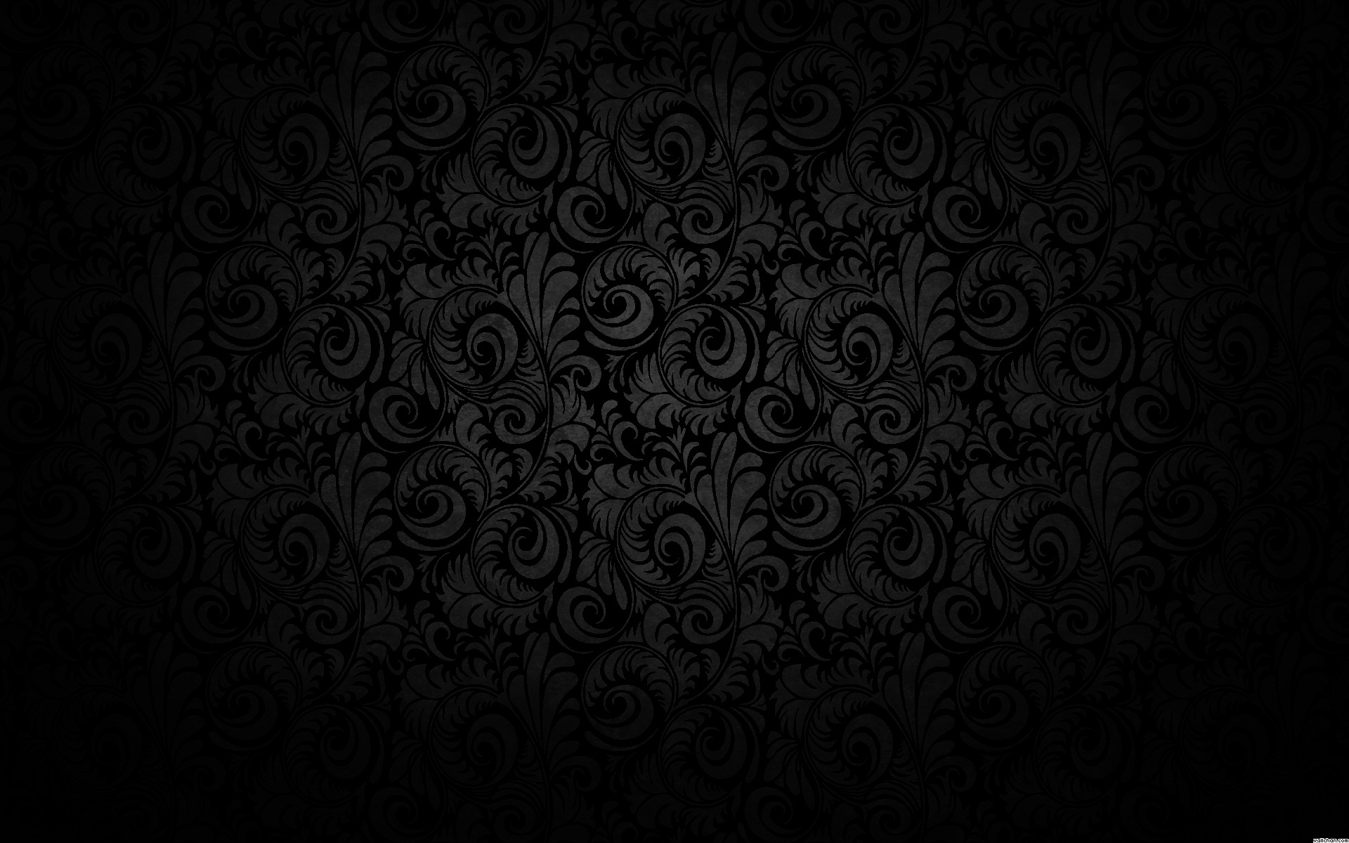 Description: A black wallpaper with a pattern of swirls and leaves on it's surface.