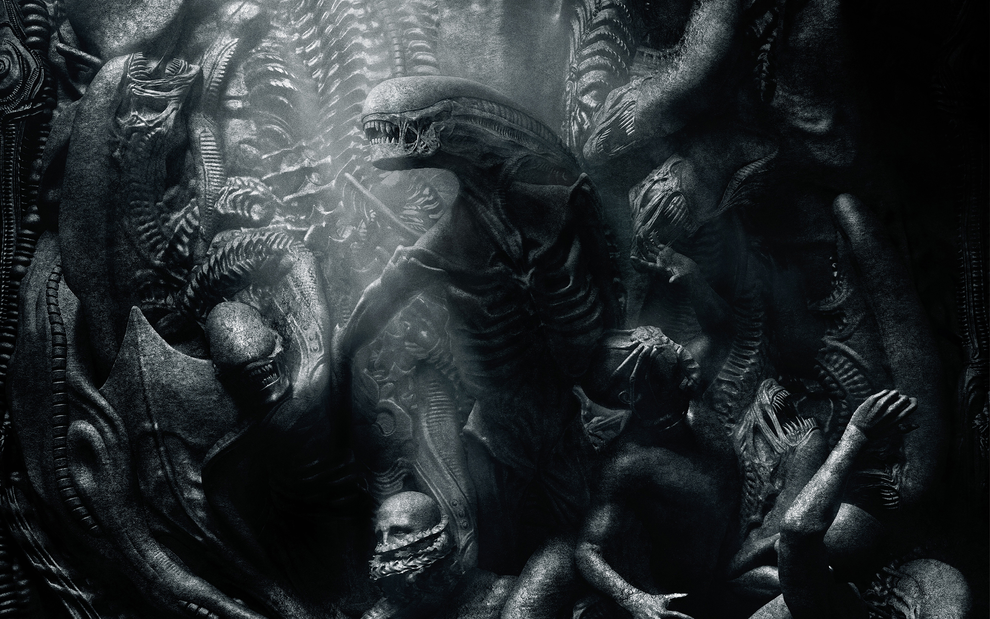 Description: A black and white photo of aliens and aliens in a forest of trees and plants with a light shining on them.