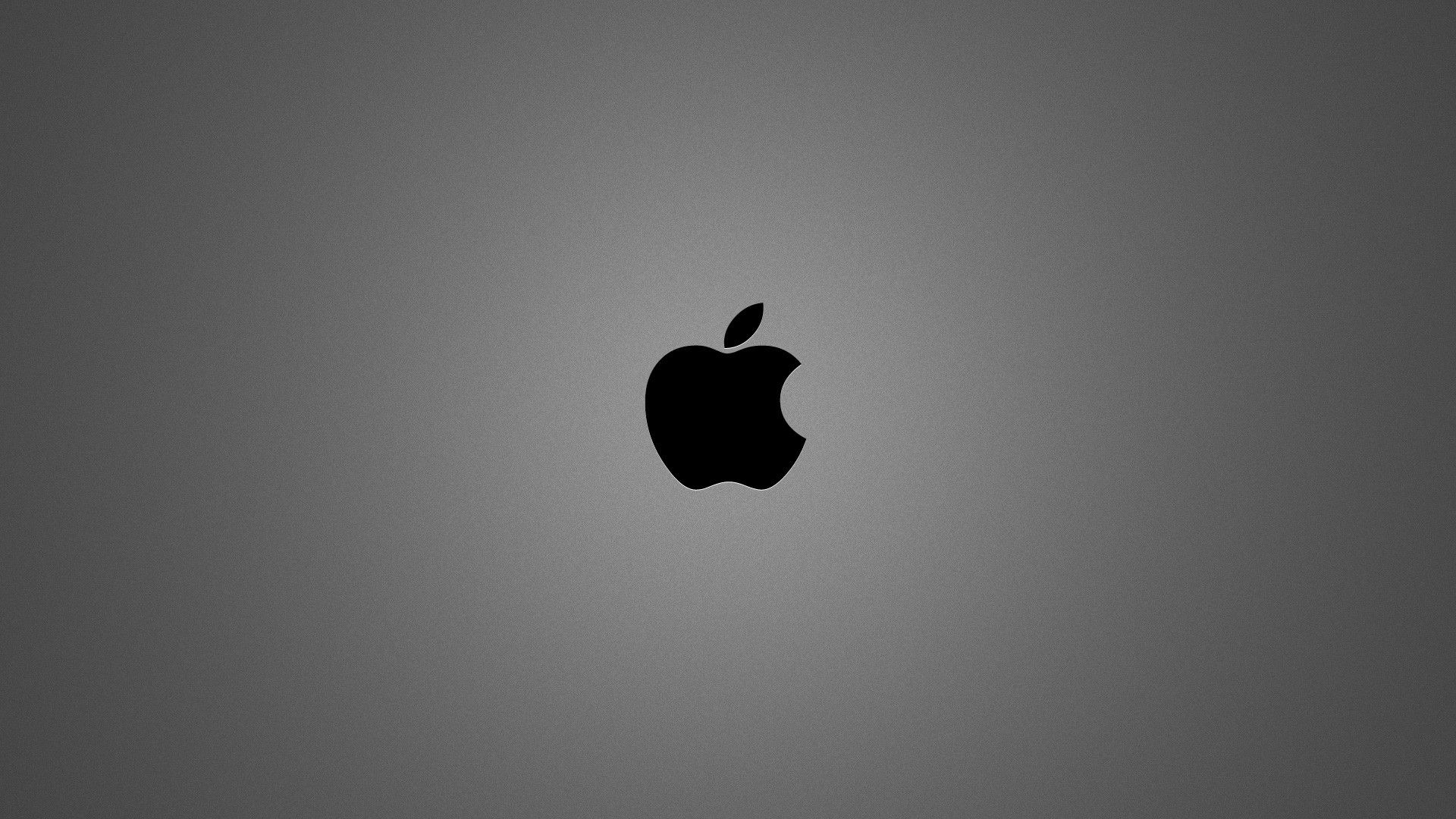 Description: A black and white photo of an apple logo on a gray background with a black and white background and a black apple logo.