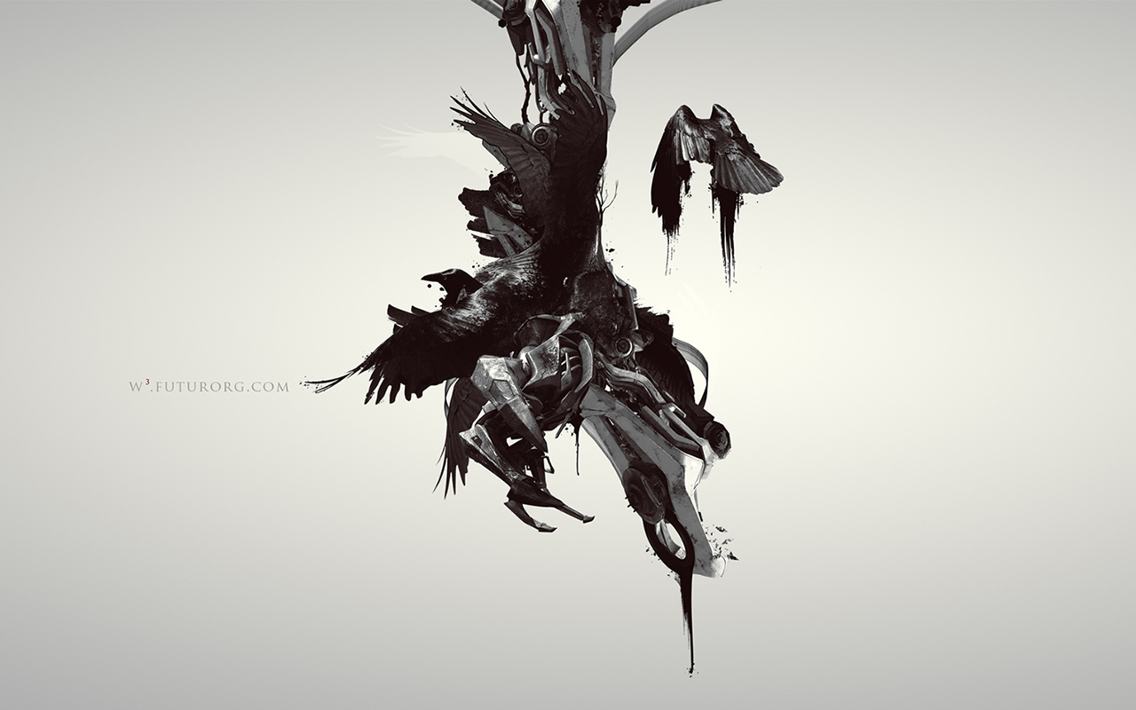 Description: A black and white photo of a bird flying in the sky with a bird on its back and a bird on its neck.